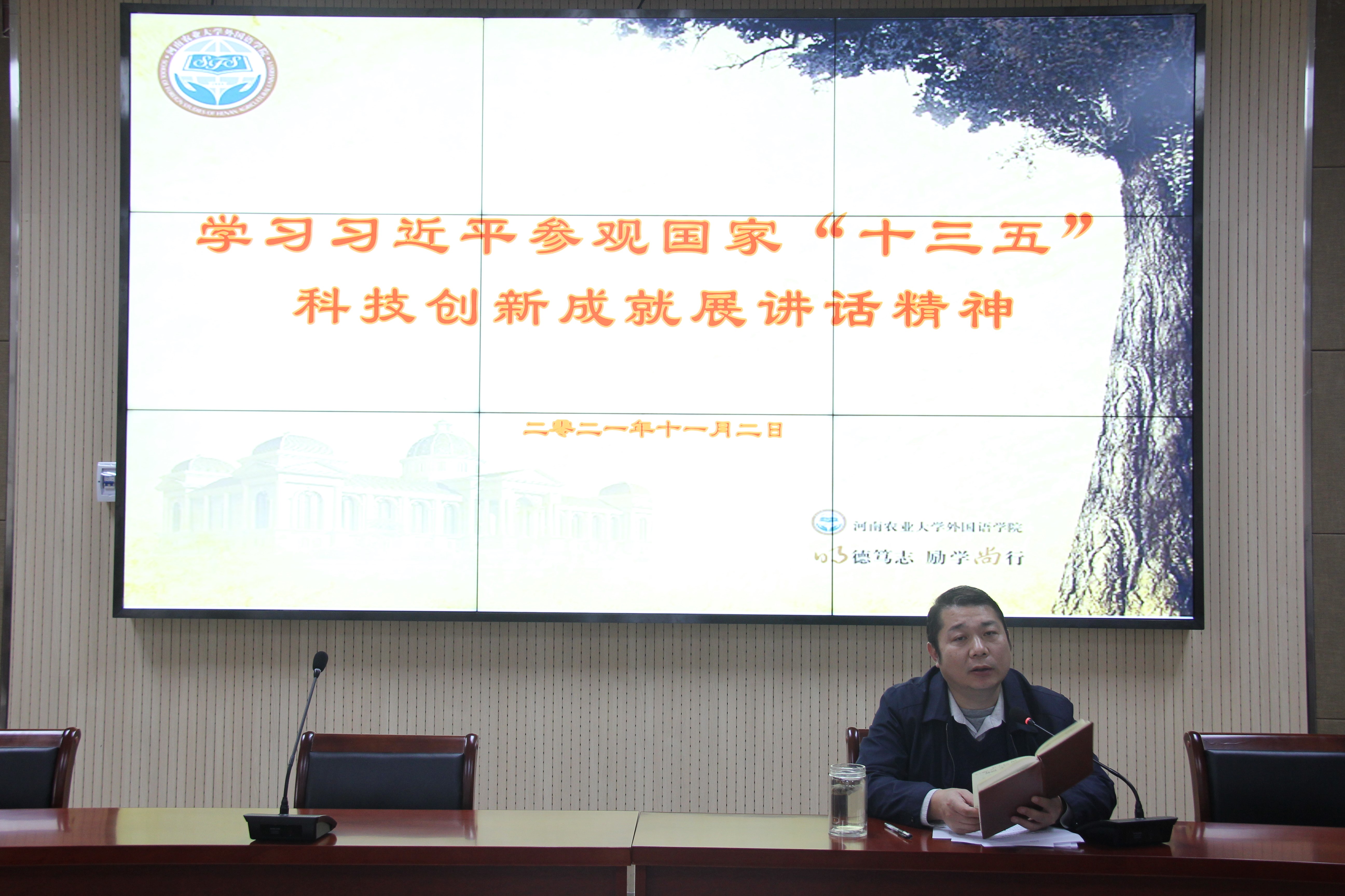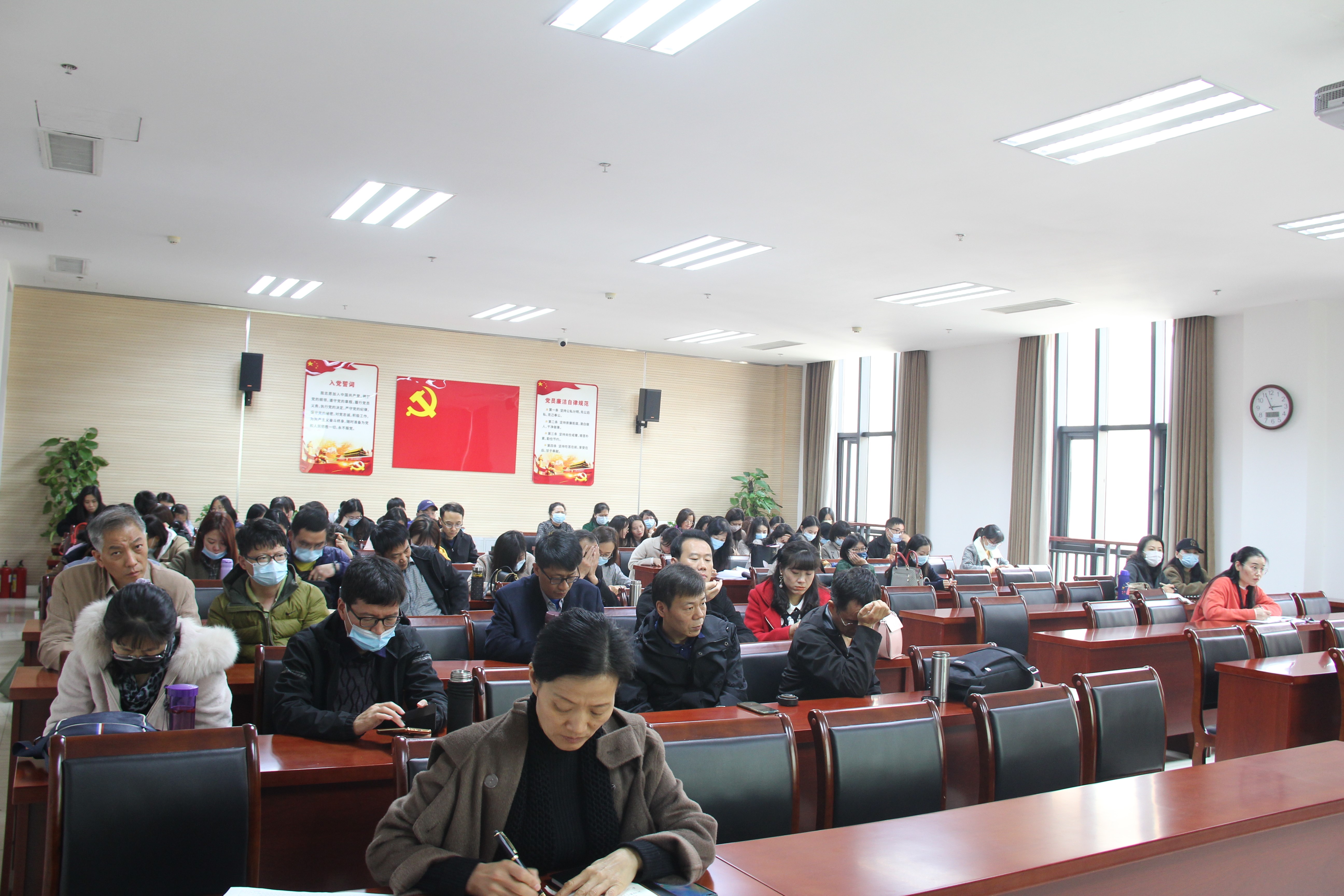 邓振营领学了习近平在参观国家“十三五”科技创新成就展时讲话精神,及《楼阳生书记在中共河南省第十一次代表大会上的报告》,一起观看了感动中国人物之一黄大年的视频,激励全体教职工,高举伟大旗帜,牢记领袖嘱托,锚定“两个确保”宏伟目标,勇担使命,将科技创新创新自信,自立自强的精神,落实于我们的工作实践。院长张俊杰对国家社科基金申报动员,对期中教学检查工作进行了周密的部署,对师德师风、学风、治学、科研攻关精神建设,再一次进行强调。号召大家,立足本职,不忘初心,甘做黄大年式好老师。