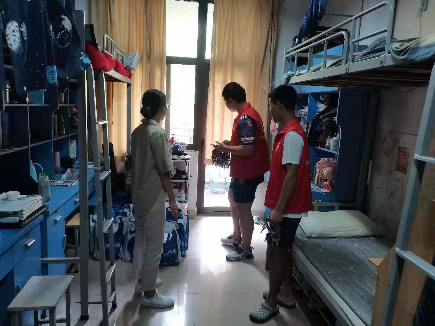 志愿者队伍在团委副书记陈桃带领下,对离校学生的学生宿舍逐一排查,确保室内无积水、无安全隐患。