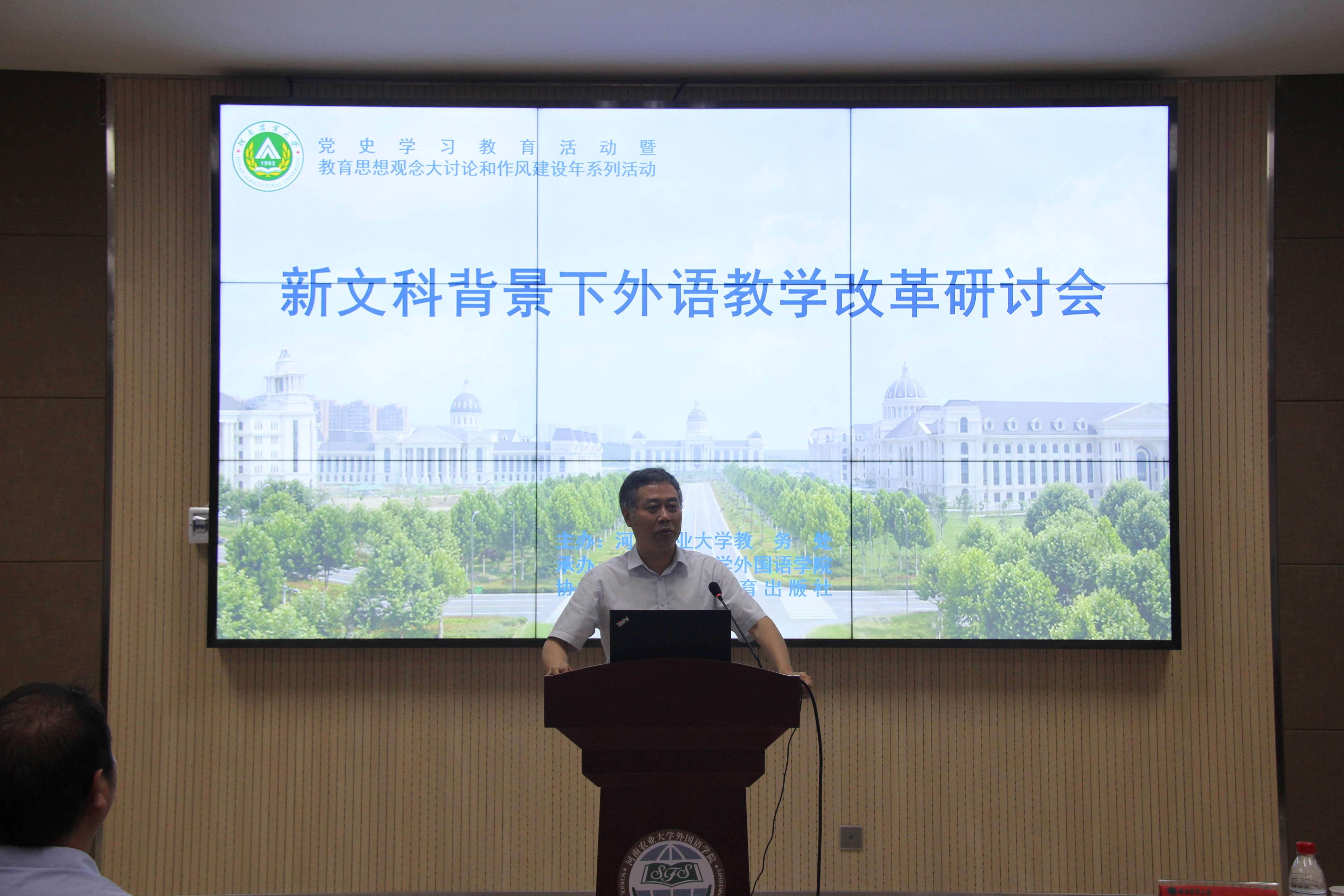 龙子湖校区繁塔楼A324举行,会议同时面向全校外语教师进行实时线上直播。