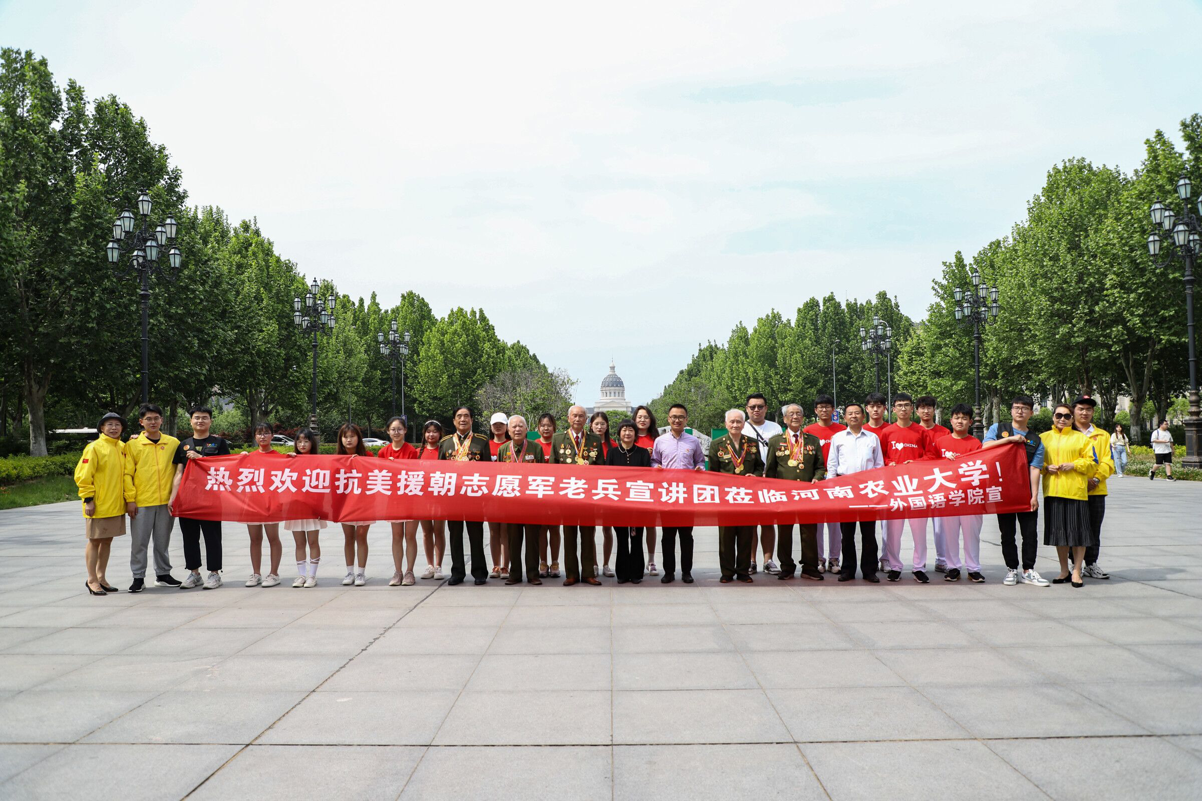 本网讯(审稿:王启佩 供稿:陈桃)为纪念建党100周年,传承抗美援朝精神,激励青年勇担历史重任,争做时代先锋,5月11日下午,抗美援朝志愿军战友会老战士杨立新、王果、刘文昌、赵金生和张敬魁以及全国劳动模范李志平、河南省道德模范张升华、“善行团”河南省会会长韩可姣等人走进太阳城App