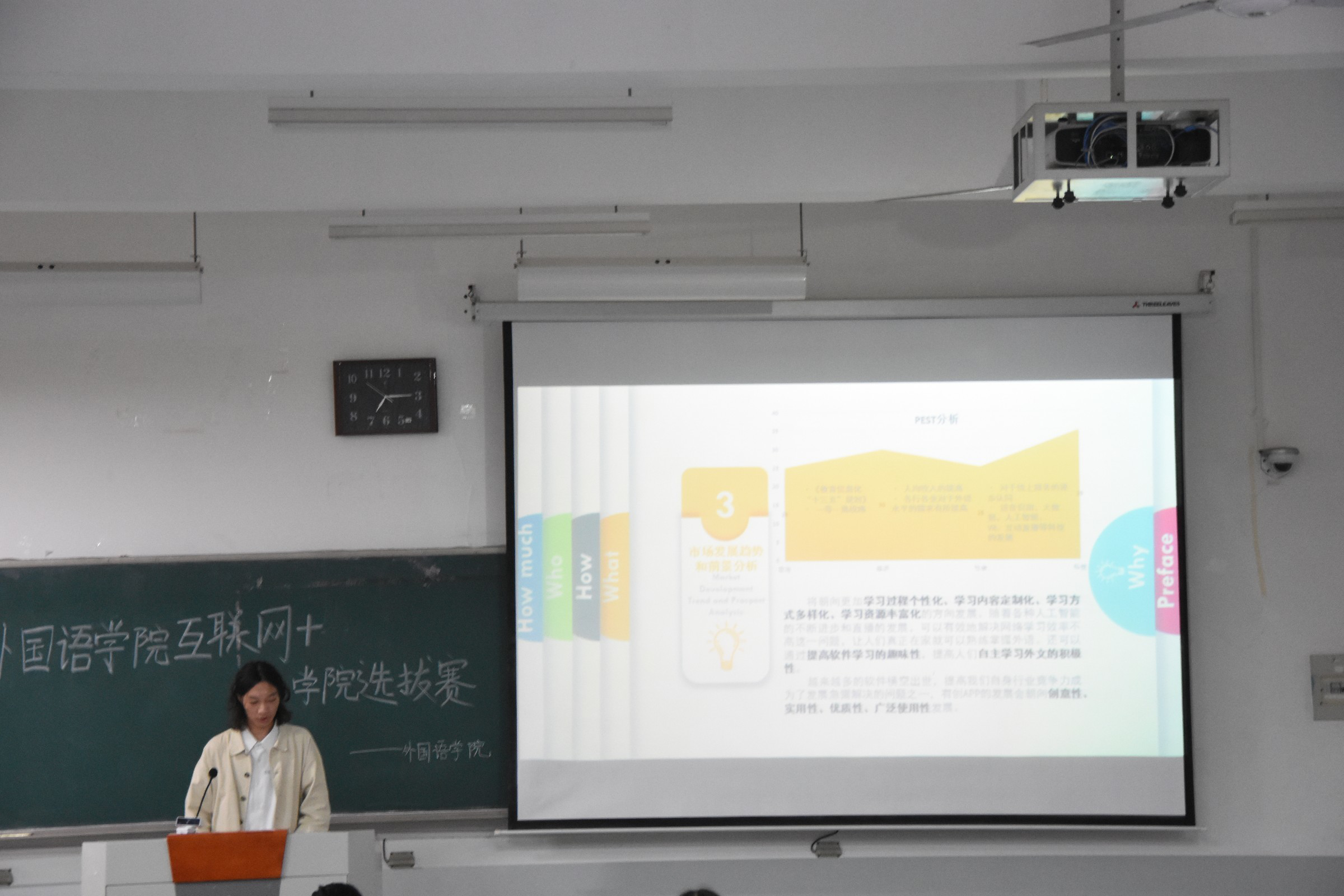 于5月19日晚7点在龙子湖校区繁塔楼C202举办了2021学年度“互联网+”大学生创新创业大赛。团委副书记陈桃、冯超、辅导员穆君怡携各班学生代表出席此次大赛并担任评委。