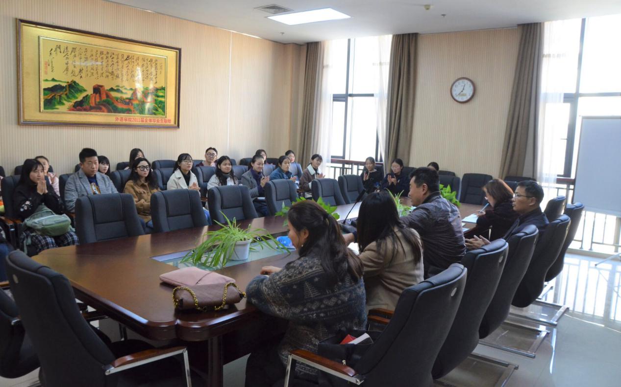在龙子湖校区繁塔楼A320和A318同时召开了2019年度期中座谈会。副院长张俊杰、日语系主任邱丽君、英语系副主任宋扬等携全院学委出席了本次会议。本次会议由李沛主持。