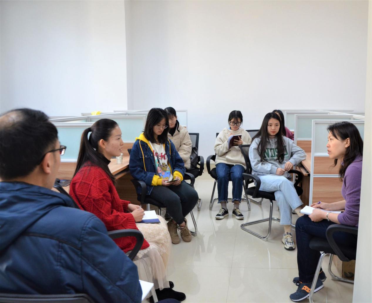 教学管理、教师授课情况、学风状况等方面的问题一一反应出来,参会老师对所提出问题认真做好记录并进行解答。期间,针对学生课堂积极性不高、老师教课节奏过快、师生间互动过少等课堂问题,张俊杰指出要加强学生各方面的独立能力,学会自主学习,同时学委要充分发挥作用,调动班内同学学习积极性并及时与任课老师交流协商,找到更适合班级的教学方法。针对教材设计不合理、学生上大课时抢坐后排等问题,宋扬表示会对教材的选择进行斟酌并合理调节大小班的上课机制,同时建议学生上课轮流回答问题,以此提高课堂活跃度。最后,座谈会在轻松愉快的氛围中圆满画上了句号。