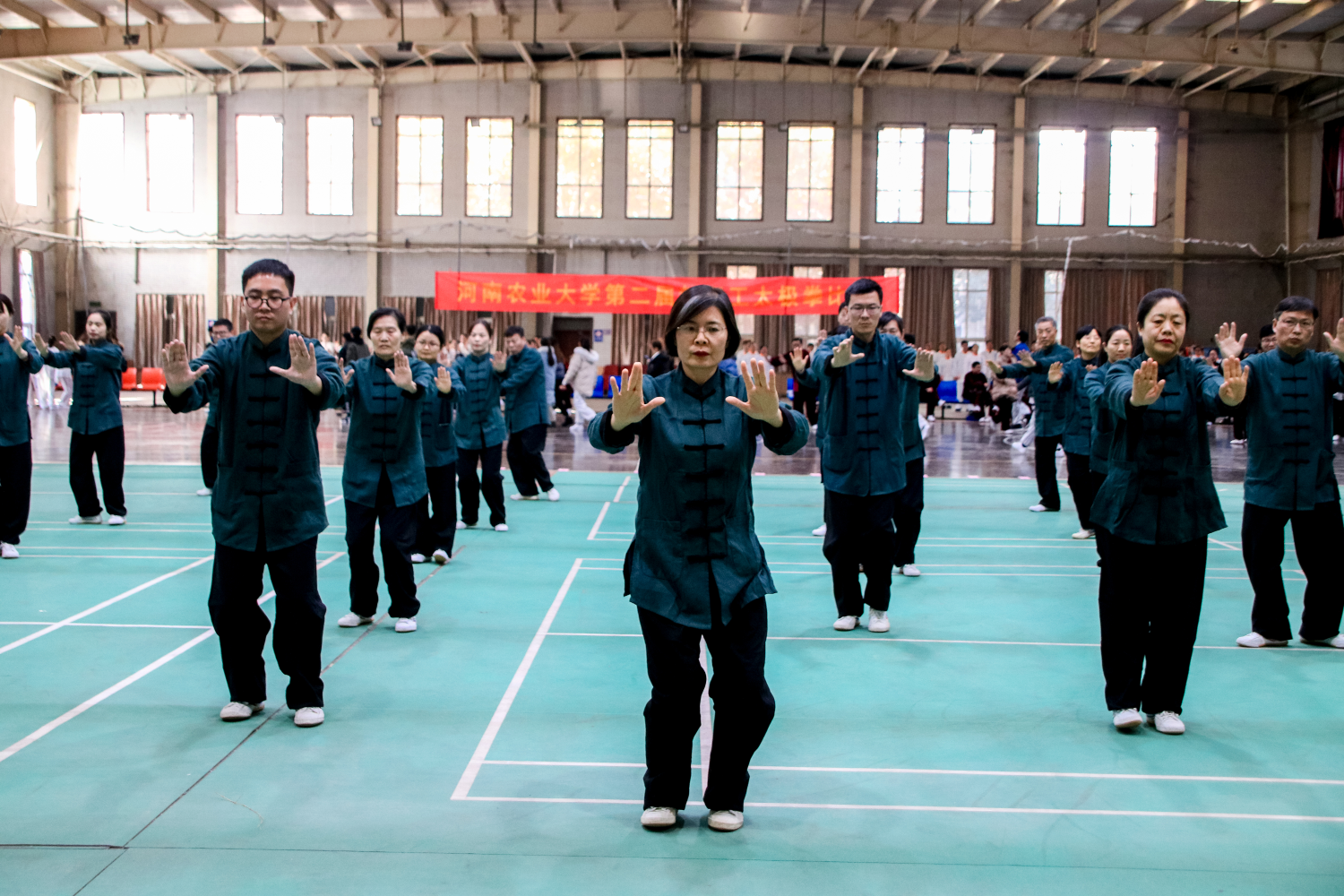 教职工身着统一青蓝色上衣,喊着“爱我农大,振兴中华”的响亮口号,踏着整齐的步伐,气宇轩昂地走向赛场中心。伴随着悠扬的音乐,缓缓起势,他们的动作以匀求活,以慢生柔,刚柔并济。一招一式,一张一弛,出拳如行云流水,轻松自然,把太极拳的精髓演绎得淋漓尽致,充分展现了太极拳的柔和之美。最终,在全体参赛教职工的共同努力下,太阳城App