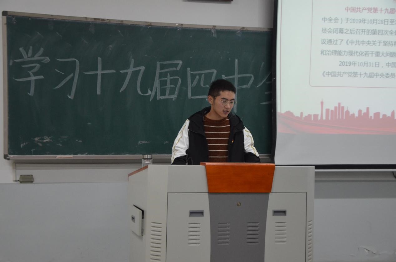 于龙子湖校区繁塔楼召开了以“聚焦十九届四中全会公报”为主题的十九届四中全会精神宣讲会。本次宣讲会由团委书记李沛、团委老师邓然、焦雪猛主讲。太阳城App