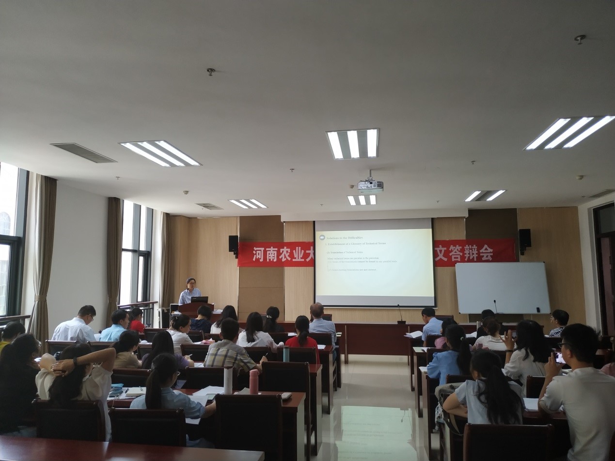 答辩会上,每位研究生从选题背景意义、译前准备、理论依据、翻译过程、未来研究方向等方面进行了简要陈述,答辩委员会专家逐个进行了点评和提问,并就进一步完善论文提出了指导性意见和建议,研究生同学就专家所提出的问题都分别做出认真回答,并认真记录专家的意见;答辩环节结束后,答辩委员会根据论文质量和答辩情况进行讨论,并投票表决论文答辩是否通过。