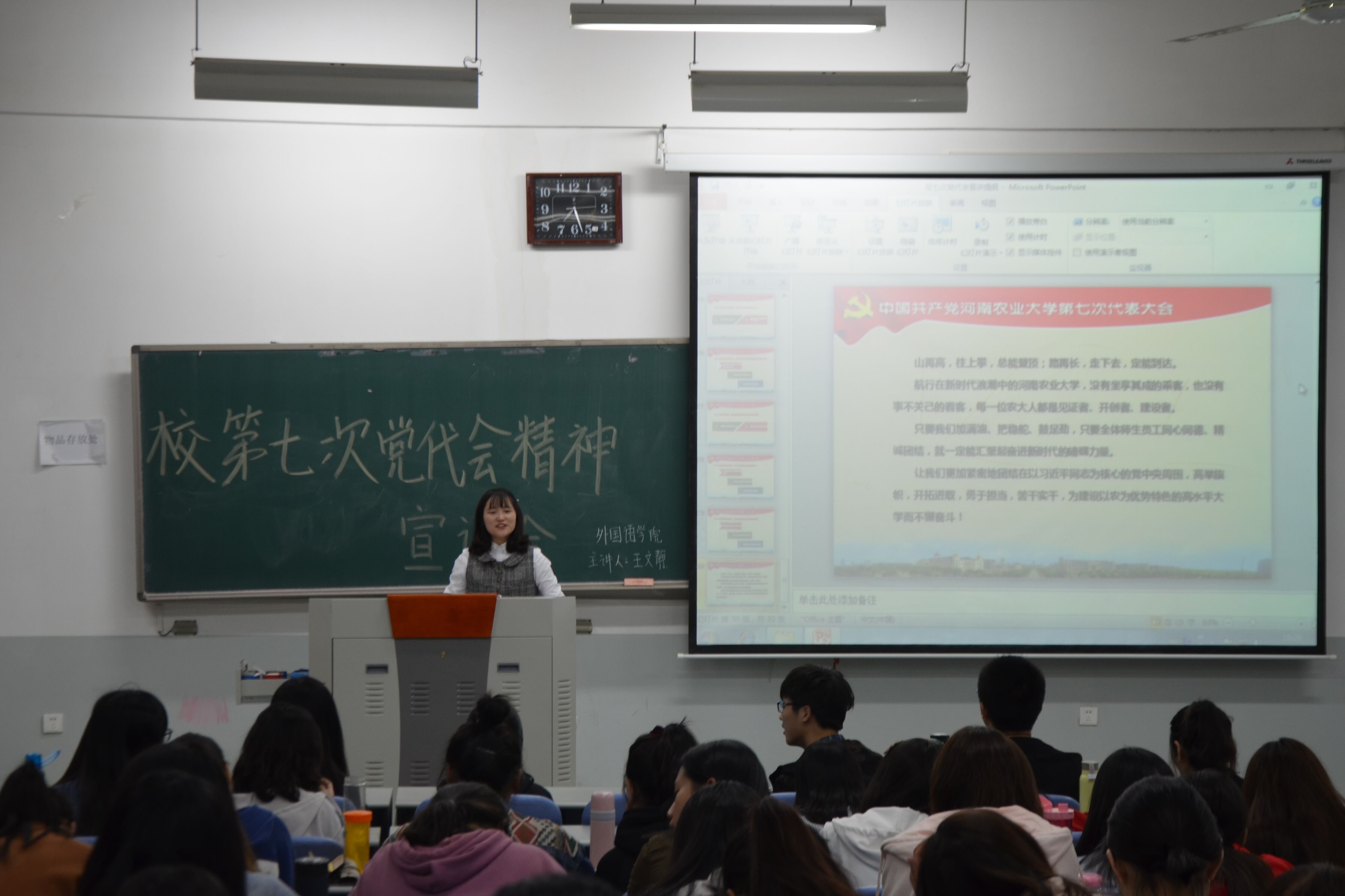 七次党代会精神,坚定不移跟党走;要爱校爱院爱专业,扎根中原沃土;要勤练本领,讲好农大故事,弘扬农大精神。