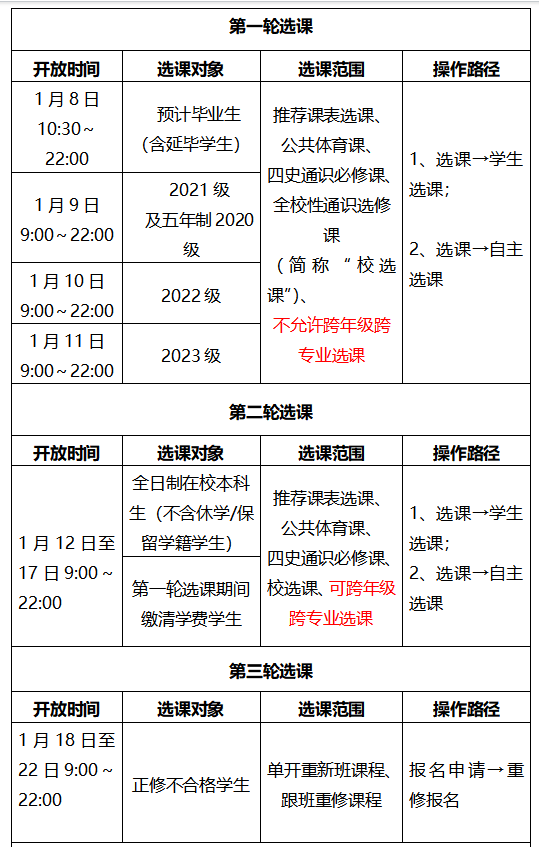 2023-2024学年第二学期网上选课定于2024年1月8日10:30分开始,本次选课按照分年级分轮次的原则进行,请各太陽城app