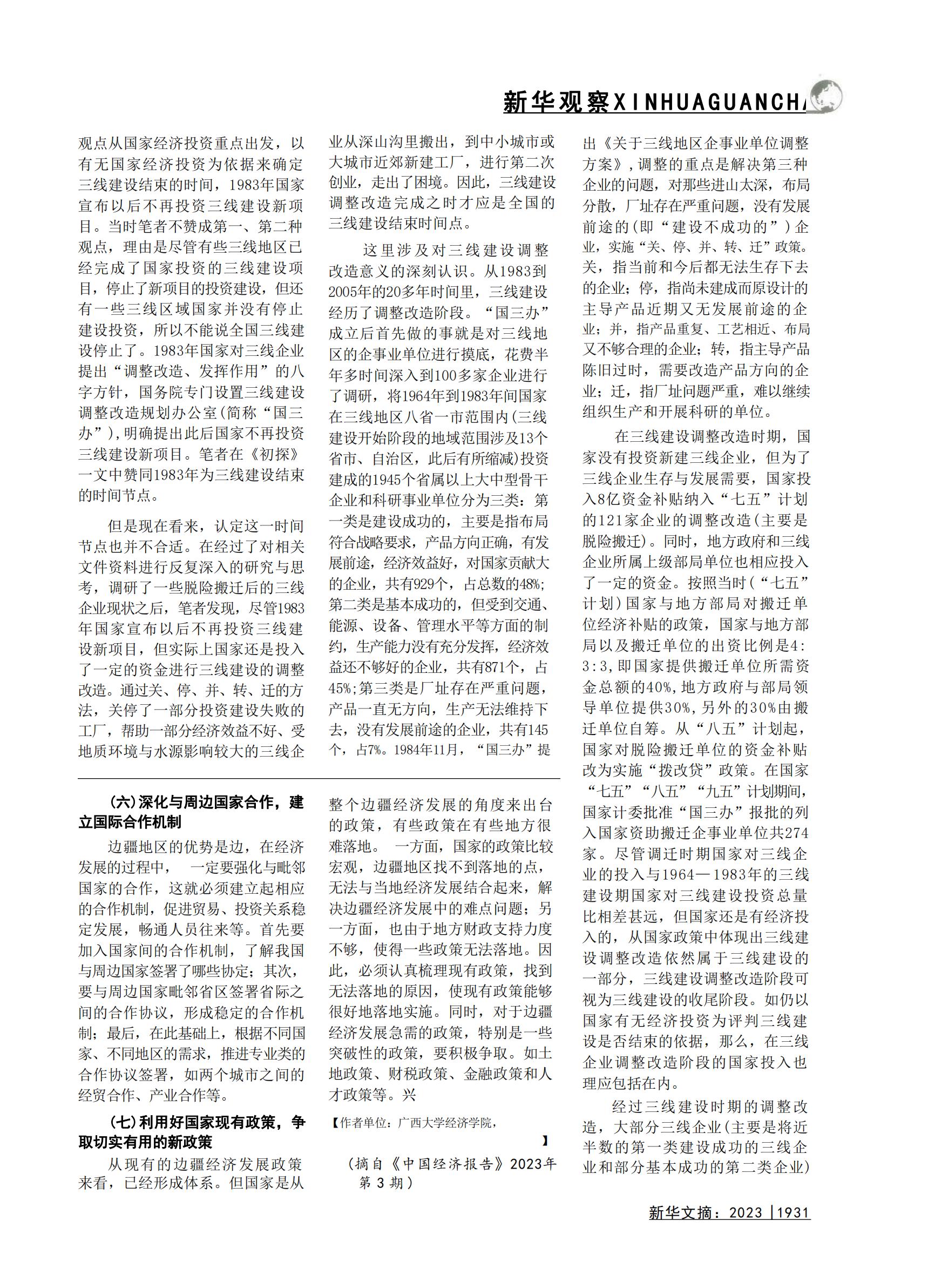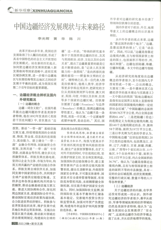 太陽城app 李光辉教授、黄华博士研究生撰写的论文“中国边疆经济发展现状与未来路径”全文被《新华文摘》(2023年第19期)转载,该论文曾发表在《中国经济报告》(2023年第3期)。