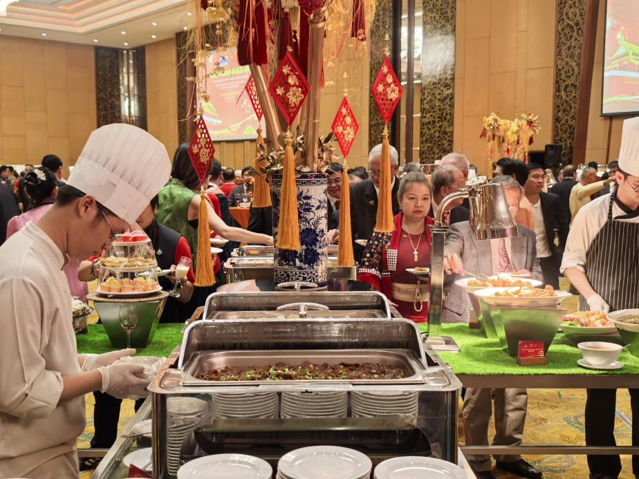 李雄英院长及其夫人亲自引导交流访学团的同学代表们与在场的中泰企业家代表进行面对面交流。师生们与企业家就中泰经贸合作、留学生情况等话题展开了热烈讨论,同学们纷纷表示收获颇丰。餐叙期间,厨师现场片制了北京烤鸭、白切鸡等多道具有代表性的中国菜肴,让国际友人体会到中华美食魅力的同时,也进一步增进了国际友谊与文化认同。