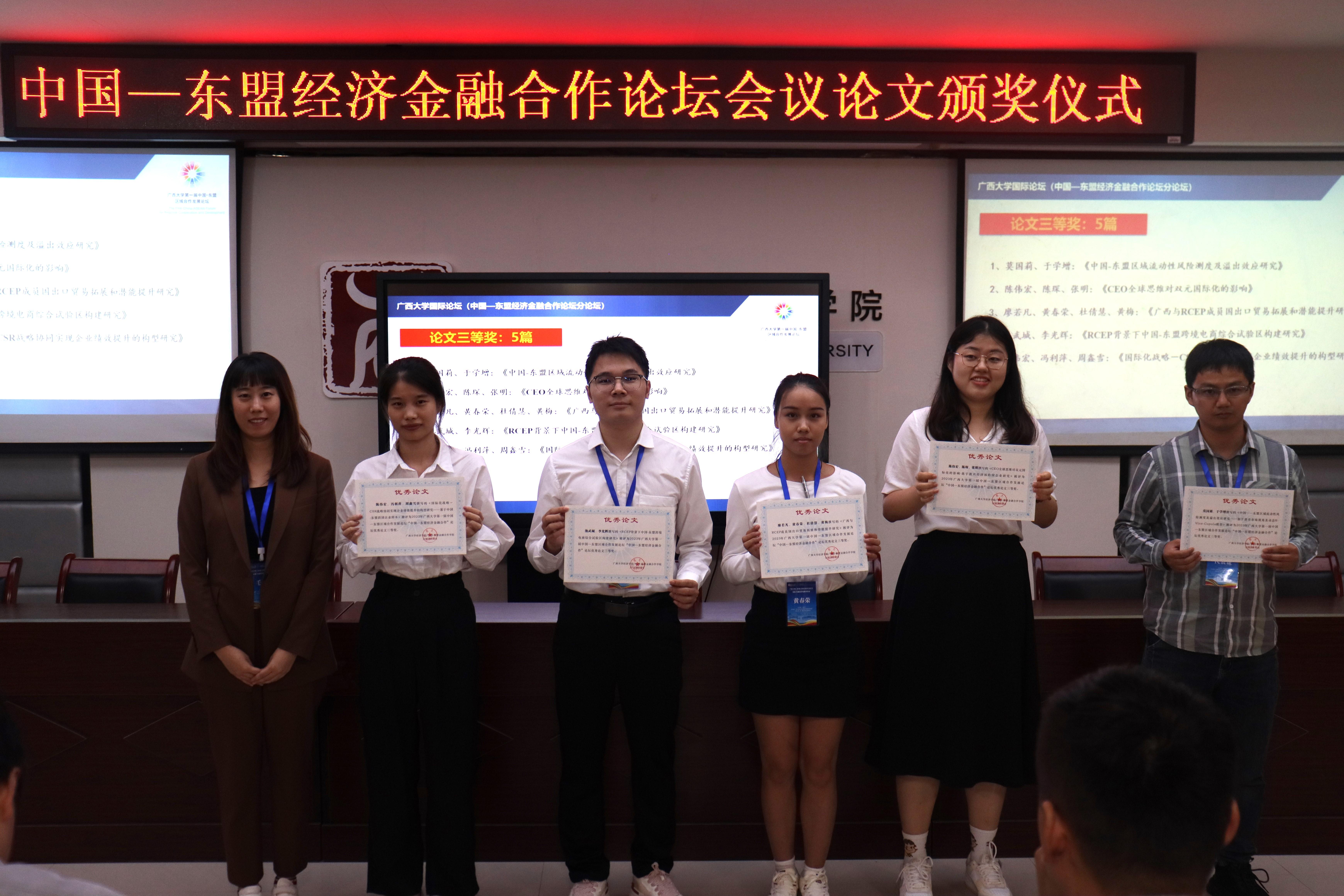 本次论坛的征文得到了来自区内外高校师生的积极响应。15日下午,论坛举办“自贸区与服务贸易”“国际贸易与投资”“金融发展与合作”三个学术平行论坛,从会议投稿中选取了《东盟国家新能源政策的就业效应研究》等34篇优秀论文,进行宣读和专家点评。最后,在MBA大楼124报告厅举行了隆重的优秀论文颁奖仪式,由金融财政支部书记陈新建主持,太陽城app