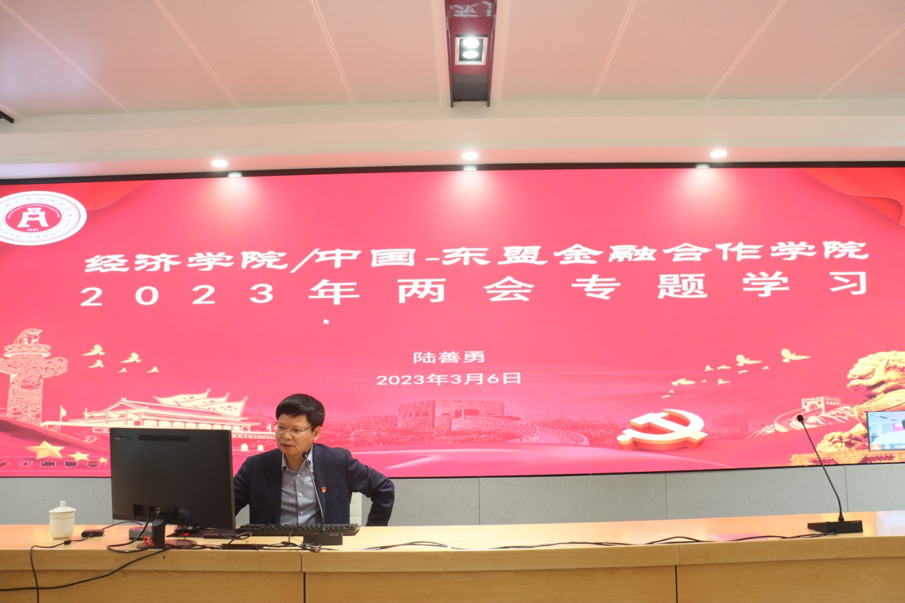 101教室举办两会专题学习会,校党委委员、院党委书记陆善勇教授领学李克强总理作的2023年政府工作报告和习近平总书记参加江苏代表团审议时的讲话精神,太陽城app