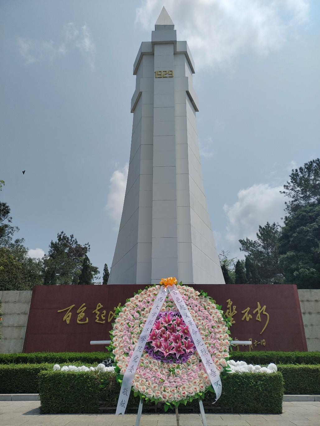 党员参观了百色起义纪念碑,党委书记陆善勇代表全体同志向百色起义革命先烈敬献花圈,深切缅怀在百色起义中壮烈牺牲的红军将士和革命群众。