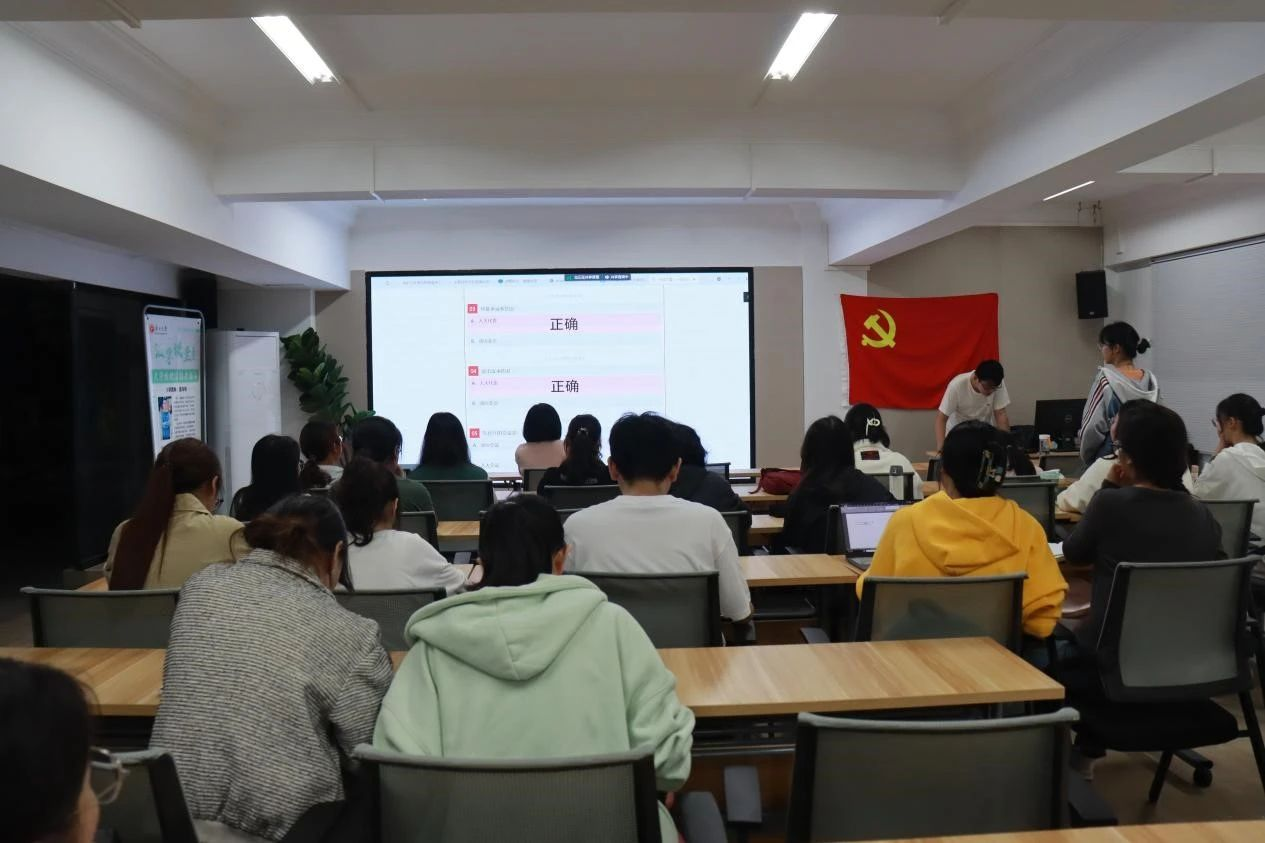 接下来进入知识竞答环节,竞答内容包含党的二十大精神、党史、全国两会精神等。竞答开始前,党支部副书记董子凯向大家介绍了竞答规则,即竞赛以个人为单位进行现场抢答,根据个人累计得分高低进行排名。竞答过程中,每个人都聚精会神地听题,踊跃自信地答题。大家纷纷表示,通过本次答题活动,夯实了党的基本理论知识、深度领会了党的二十大和全国两会精神。支部党员们更加紧密地团结在党的周围,增强了对党的信心和认同,也为支部的下一步工作注入了新的活力和动力。