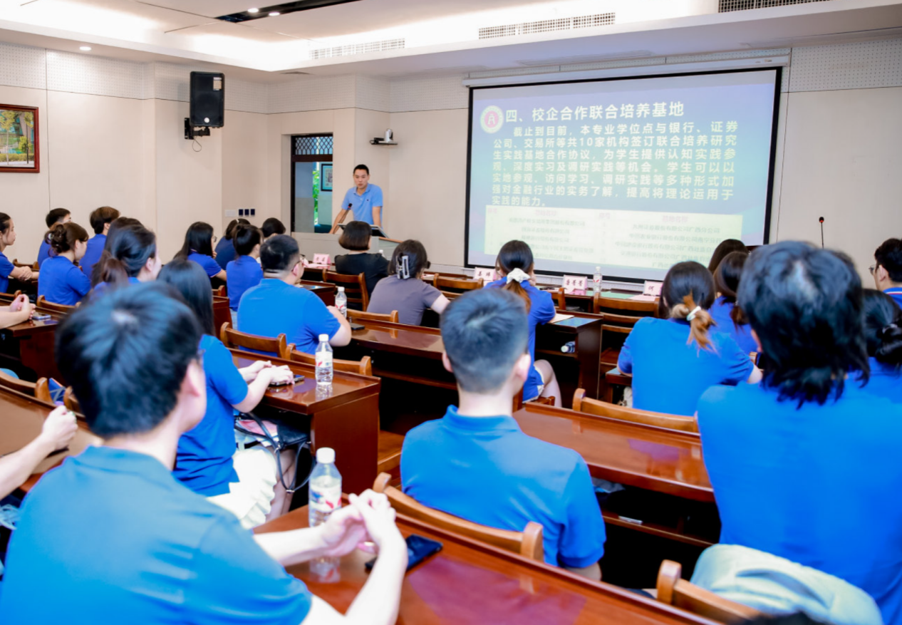 唐菁菁老师详细介绍了金融硕士专业的办学特色与培养要求,帮助同学们深入了解学习要求与发展路径。他希望新生能够尽快适应学习节奏,合理规划学业与职业发展,以饱满的热情投入新阶段的学习生活。