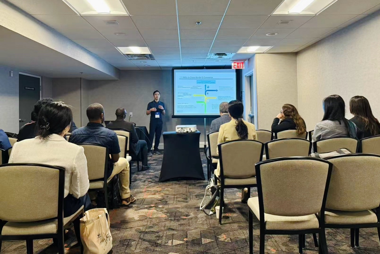 应用经济学专业2021级博士研究生冯春风受邀参加会议,并作了题为“Synergetic Dynamics Between SMEs and Platforms in Business-to-Business E-Commerce(中小企业与平台在B2B电子商务中的协同动态)”的学术报告。