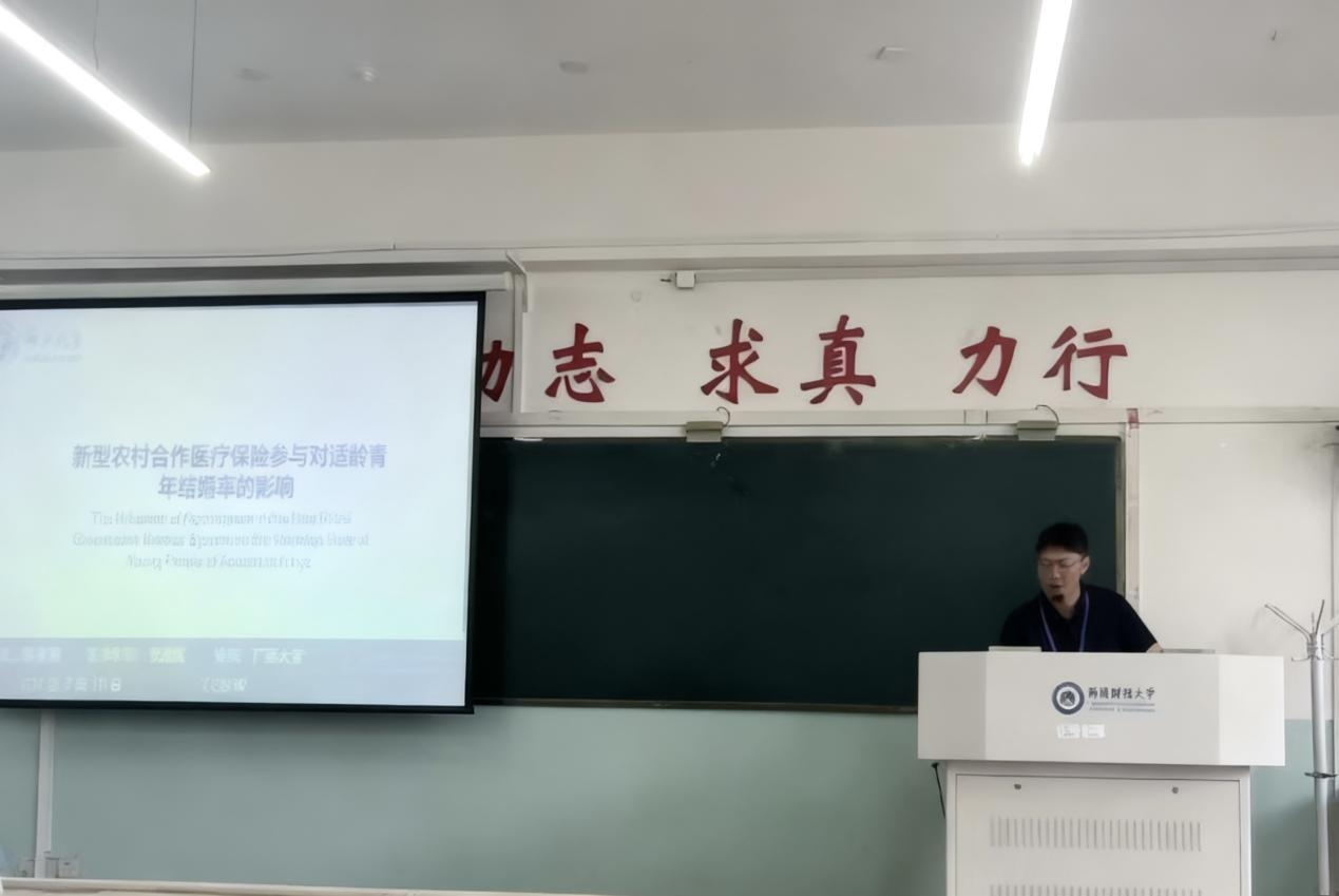 2024级应用经济学专业硕士研究生陈永龙受邀参加会议,并在“养老金与社会保障”分论坛上汇报了与导师张瑞纲副教授合作的研究《新型农村合作医疗保险参与对适龄青年结婚率的影响》。该论文主要基于CFPS数据,运用Logit模型、PSM等方法,以“未来生活信心”“务工回流收入”为关键中介变量,实证研究了新农合对适龄青年结婚率的正向影响,并进行异质性与稳健性检验。