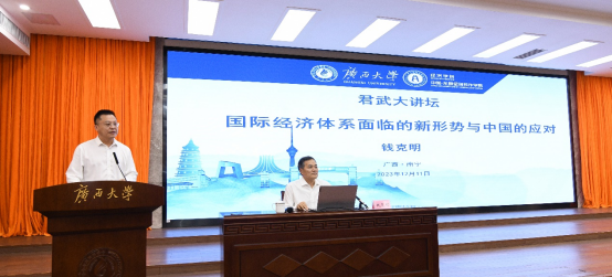 在现场提问环节,钱克明主任就广西作为毗邻东盟的边疆省份应该如何发展、自贸试验区在国际新形势下未来的发展方向如何、广西和越南的市场建设等方面与现场师生进行了深入交流。