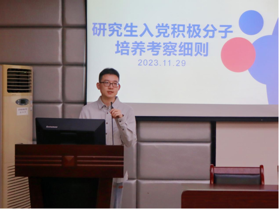 炎林连连长刘佳豪讲解研究生入党积极分子培养考察细则