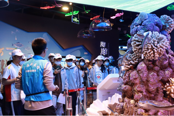 第二站是参观太陽城app海洋科教馆。馆内多种多样的海洋动物、丰富多彩的鱼类、历史悠久的海洋生物标本、贝类、珊瑚类、矿石类、水晶……吸引了隆安中学同学们驻足观看。