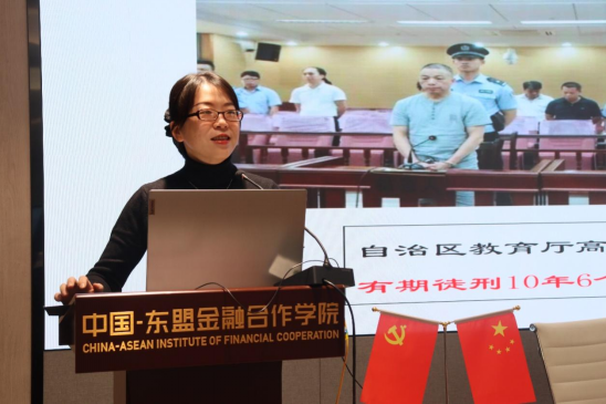 陈卉娟副书记首先从“拒防腐变,警钟长鸣”切入,对近年来广西教育界发生的六起违纪违法典型案件进行了解剖式分析。她指出,2023年上半年,全国纪检监察机关共立案31.6万件,查处中管干部36人、厅局级干部1588人、县处级干部1.3万人、乡科级干部4.2万人。这些案例和数据让全院教职工更加直观地感受到党和国家坚定不移深化正风肃纪反腐的决心,并将持续保持惩治腐败高压态势,坚持受贿行贿一起查、斗争一刻不能停。她强调,这些违纪违法案情令人震惊、发人深省,大家一定要深刻认识其发生的根本原因和严重后果,警醒自身始终严守党纪国法、绷紧拒腐防变之弦。