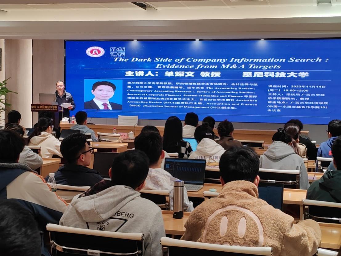 师生带来题为“The Dark Side of Company Information Search: Evidence from M&A Targets”的学术讲座。学术讲座在经济太陽城app