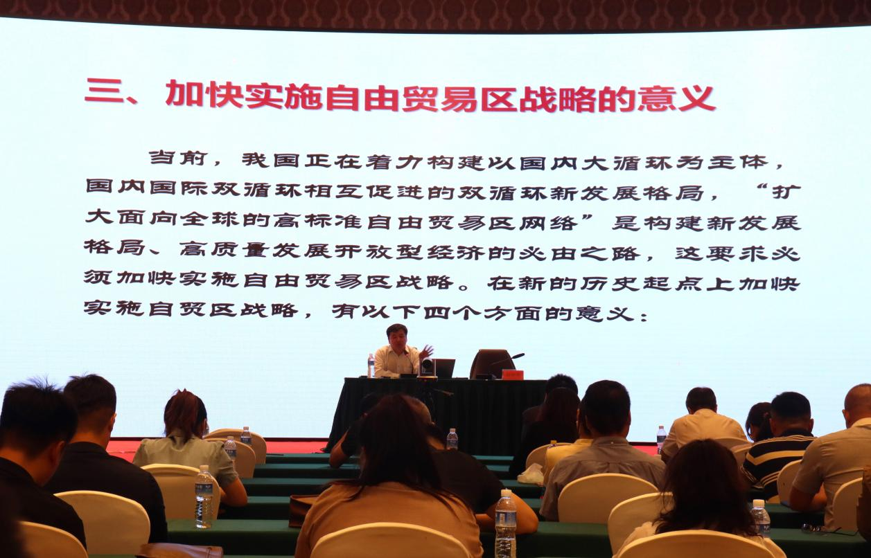 7月20日,在内蒙古宣传部、商务厅举办的“打造我国向北开放重要桥头堡”研讨会上,以“习近平总书记边疆经济思想和内蒙古战略定位”发表演讲,25日上午,由黑龙江省商务厅、黑龙江省贸促会主办的自由贸易区建设及对俄经贸法律实务培训在哈尔滨市举行,李光辉院长出席培训会,并就《实施自贸区提升战略,高质量发展开放型经济》主题演讲。他从加快实施自由贸易区战略的意义、面临的新形势与新要求以及我国自由贸易区提升战略的重点方向等方面展开论述。
