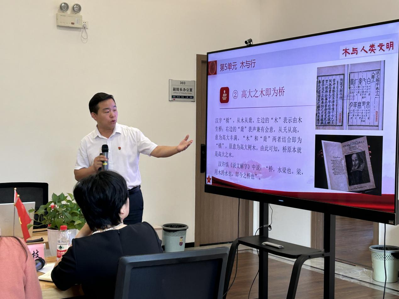 副教授高伟,就课程思政设计与实践--以《木与人类文明》课程为例开展课程思政培训专题讲座。