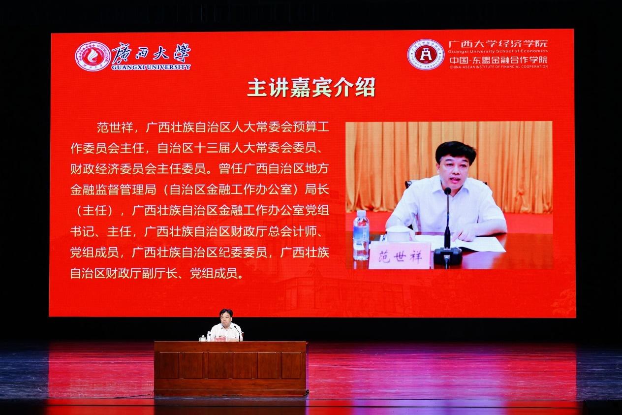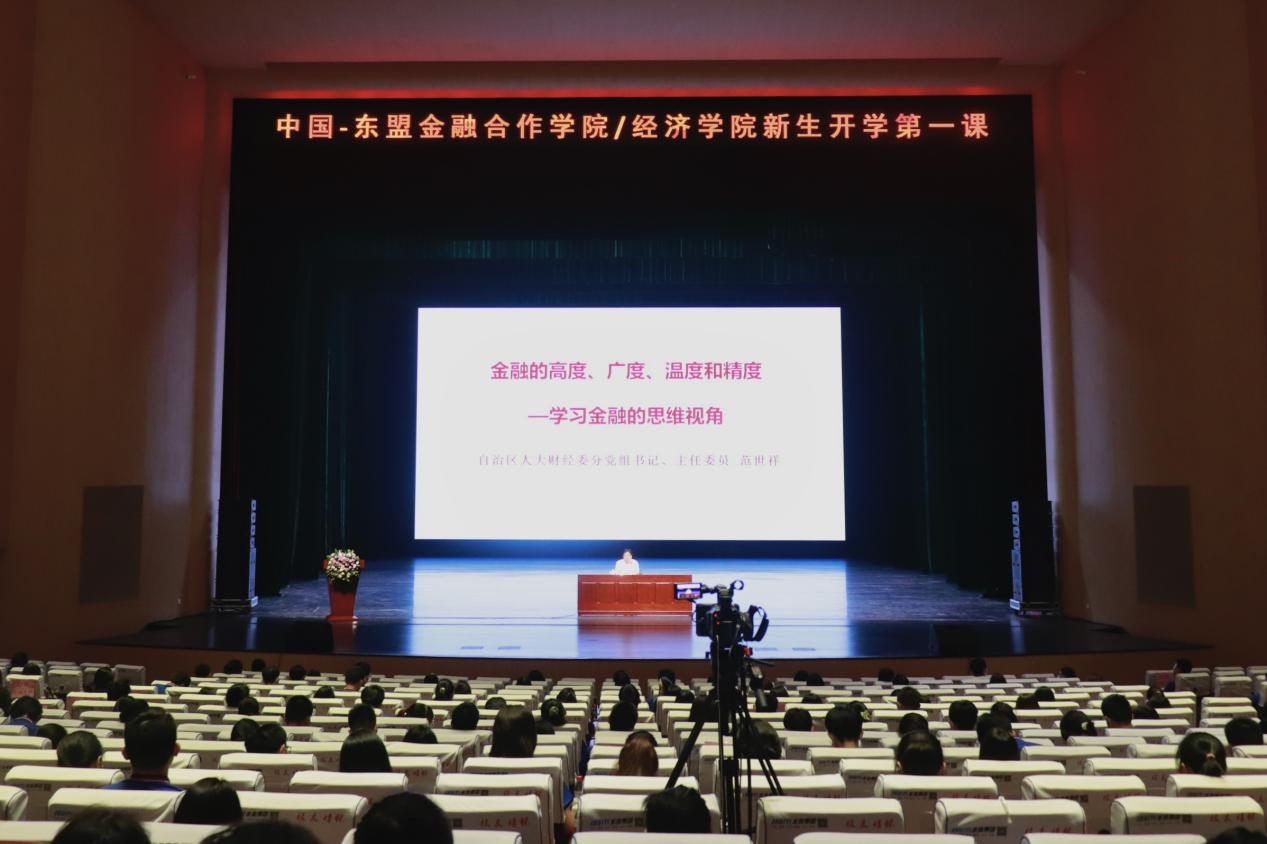 在汇学堂开展2022级新生开学活动,广西壮族自治区人大财经委分党组书记、主任委员范世祥为全院新生带来“开学第一课”:《金融的高度、广度、温度和精度——学习金融的思维视角》专题讲座。太陽城app
