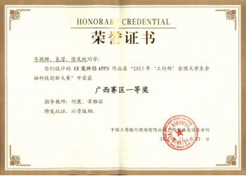 由何康、常雅丽老师指导,韦颖珊、袁滢、徐友统三位同学组成的“E起宠你”团队在广西赛区决赛中荣获一等奖!