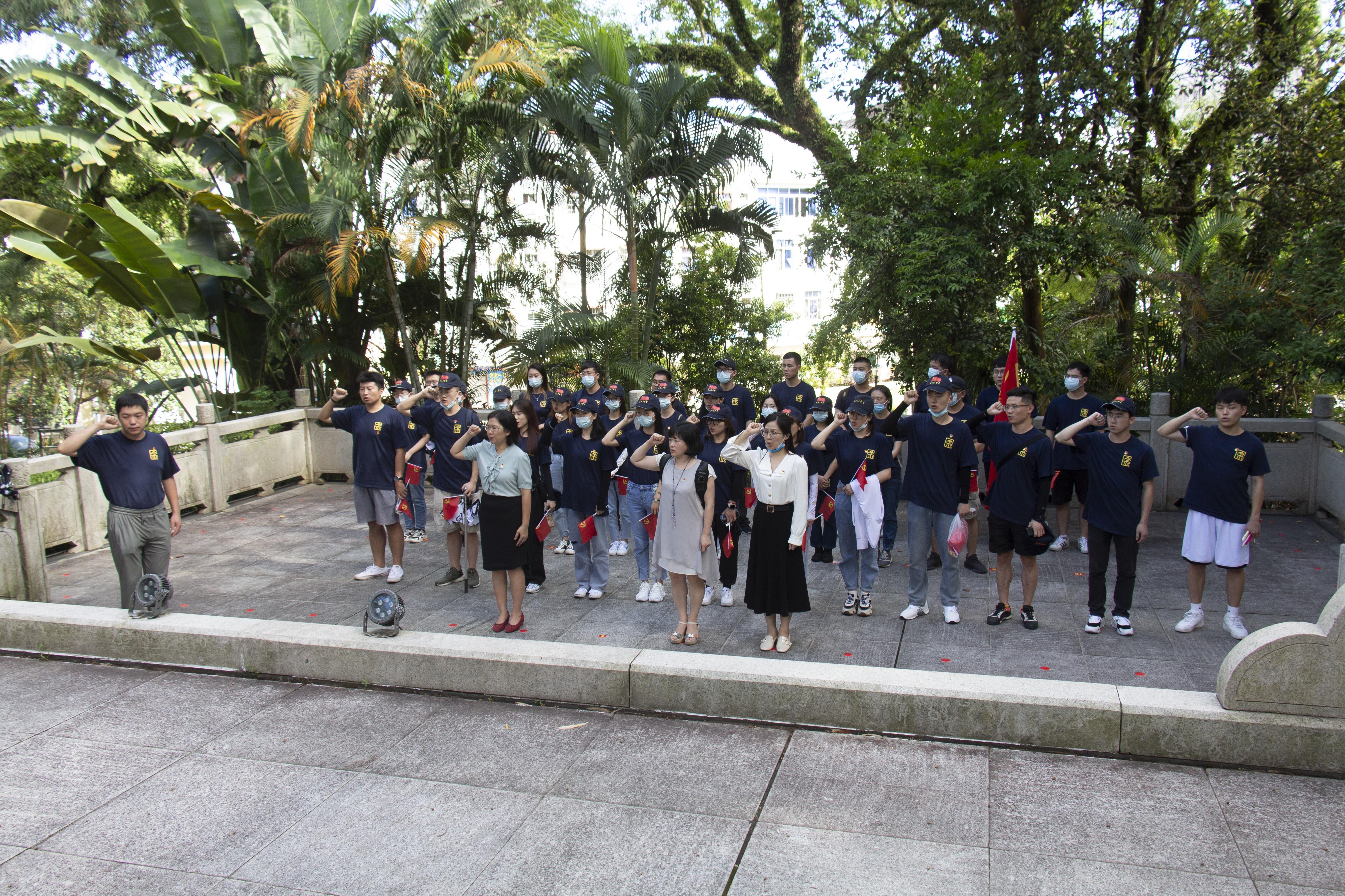 紧接着我们来到了中越人民友谊公园,在东兴支部成立纪念碑前,陈副院长带领我们重温入党誓词,锵锵誓词再次增强了每一位党员的党性观念和责任意识,提醒我们铭记初心,砥砺前行。