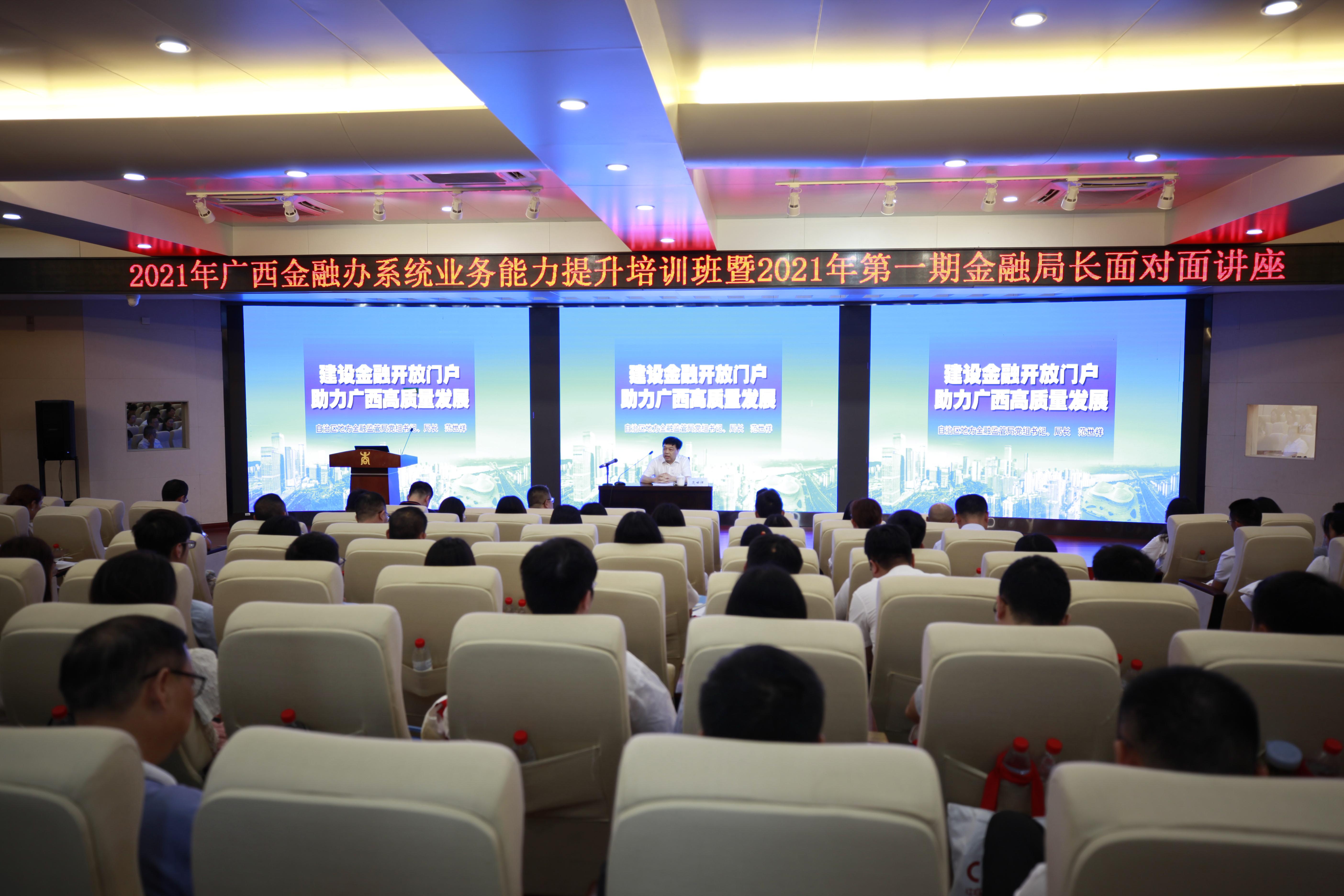 举办的首届金融局长面对面讲座正式开始,区地方金融监督管理局局长范世祥担任本次活动主讲,区地方金融监管局副局长战勇、副巡视员韦壮造及百余名广西各地市金融管理干部一同参会。太陽城app