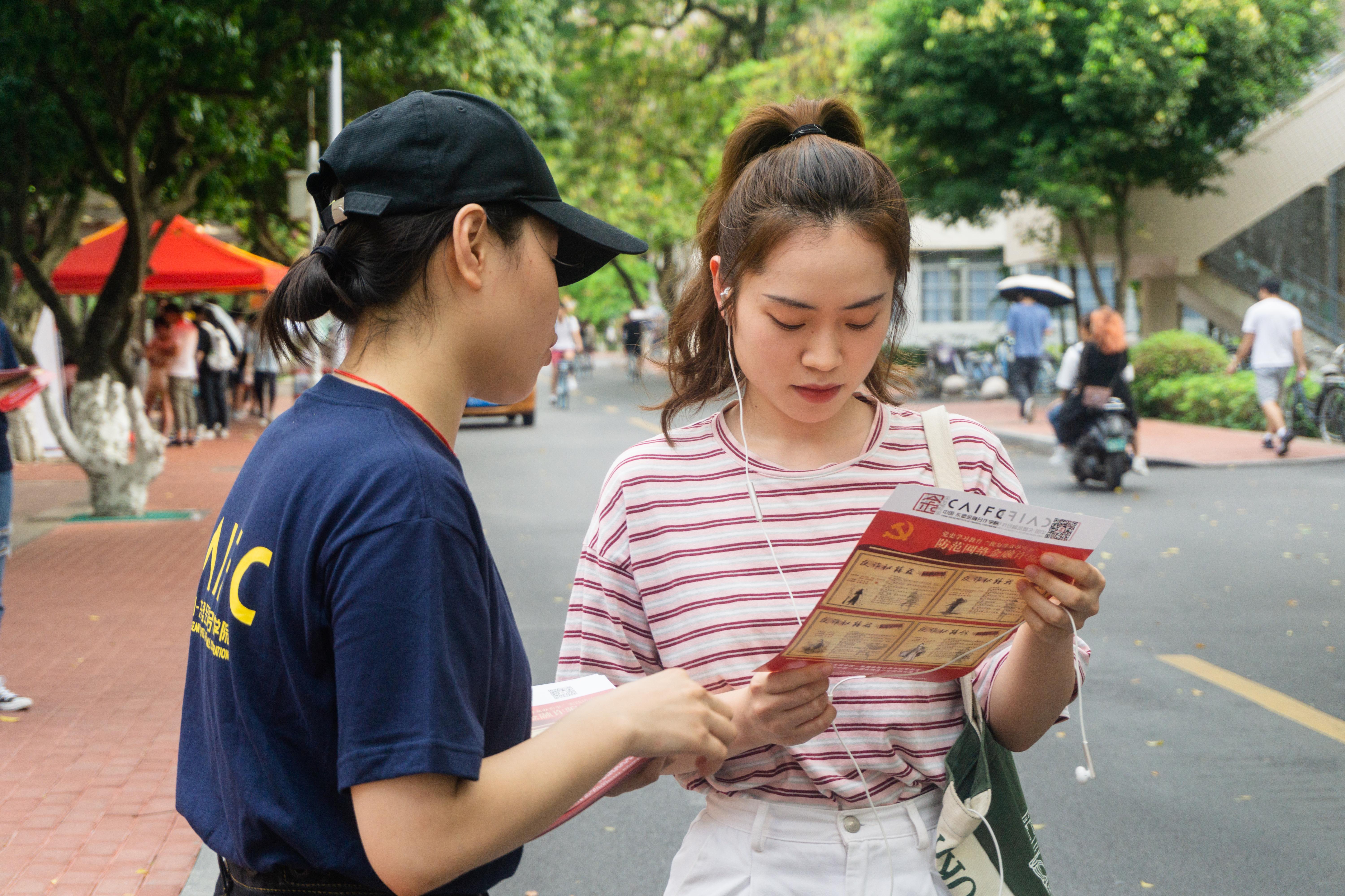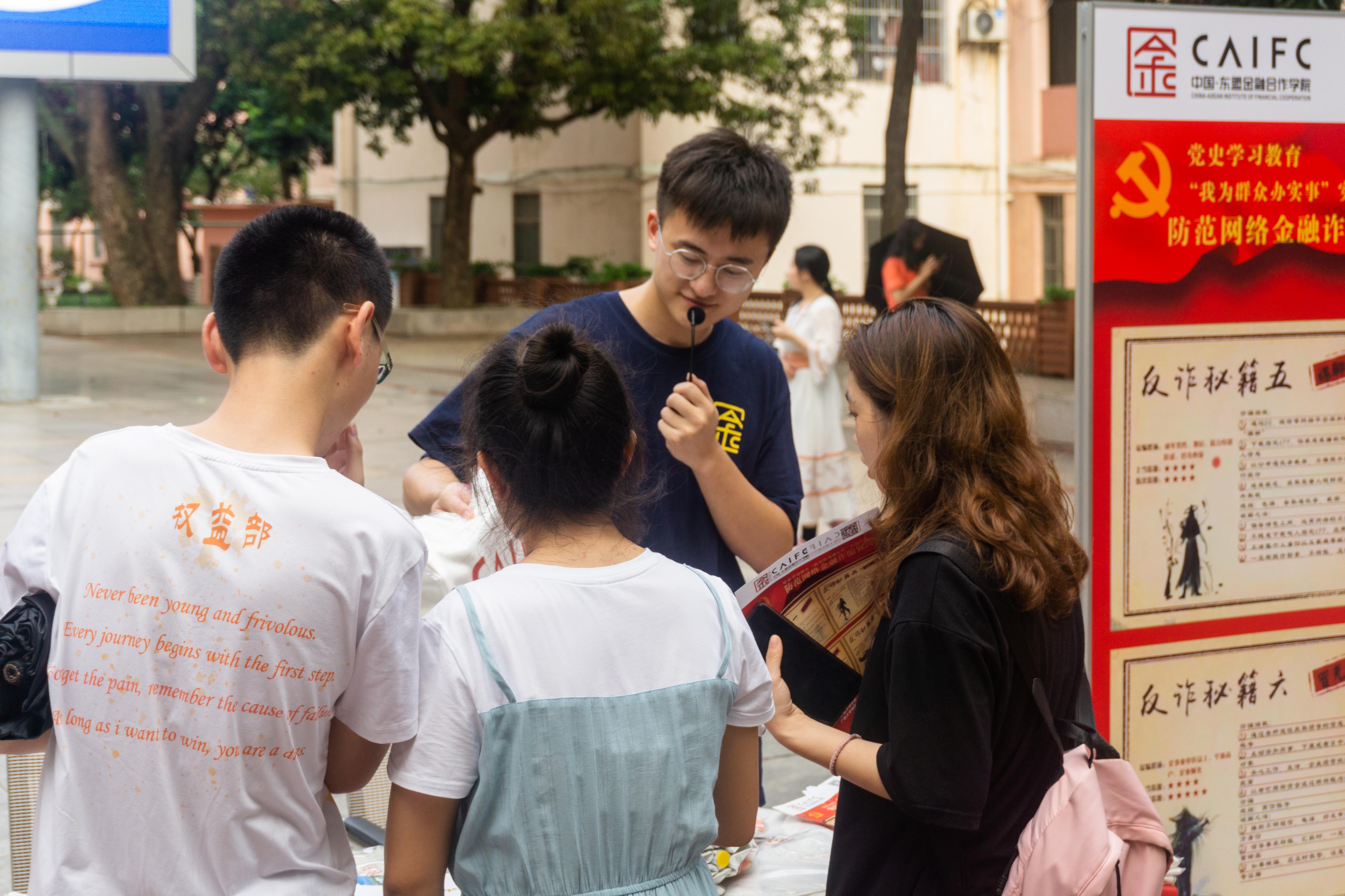 学生党员通过派发海报、知识讲解、防诈骗知识问答兑奖等多种多样的形式向太陽城app