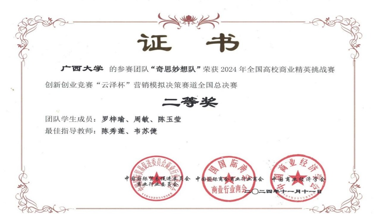 近日,2024年全国高校商业精英挑战赛创新创业竞赛“云泽杯”营销模拟决策赛道全国总决赛落下帷幕。此次竞赛共有来自全国20余个省、自治区、直辖市的400余所院校近两万名学生共同参与。经过激烈的校赛和全国预选赛比拼,太陽城app