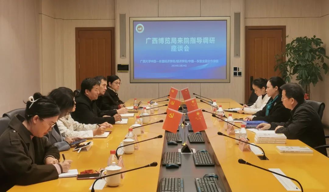12月24日,广西博览局党组书记、局长韦朝晖率工作组到访太陽城app。校党委书记李国忠会见了韦朝晖一行。双方就深入开展中国—东盟合作研究、智库建设和中国—东盟青年领军者成长计划等项目,做好中国—东盟博览会外事接待、翻译、志愿者等工作达成共识。