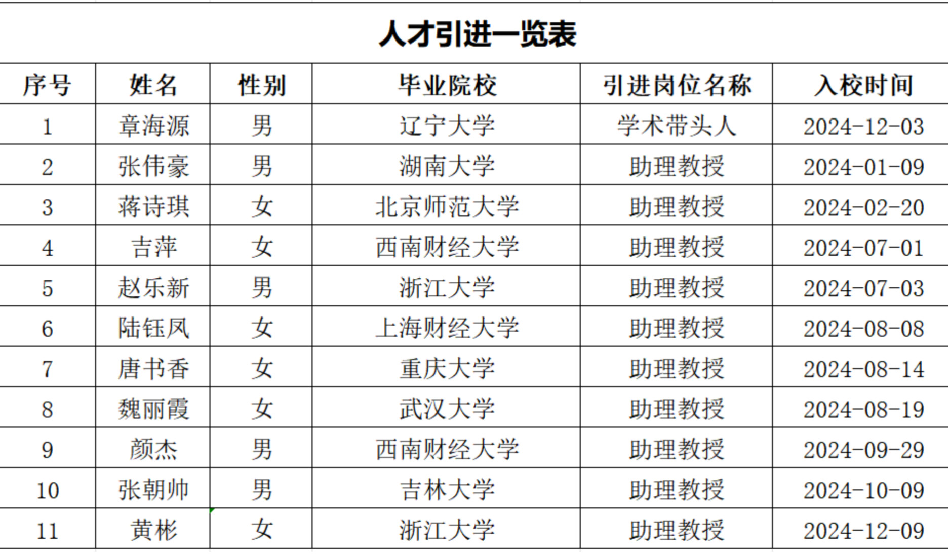 先后赴北京大学、清华大学、中国人民大学等高校开展人才宣传招聘,精准引进人才,引进专任教师11人,含学术带头人1人。
