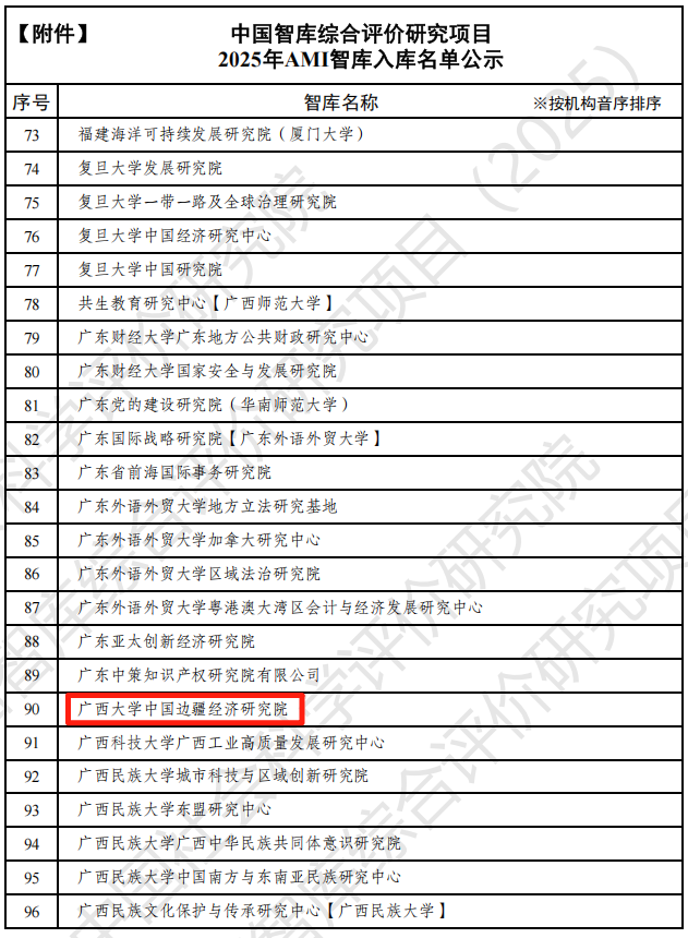 附件:中国智库综合评价研究项目(2025)AMI智库入库名单