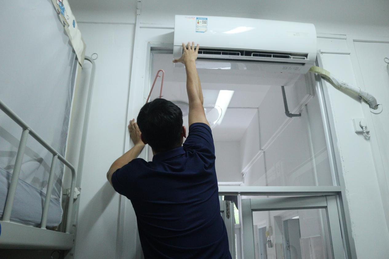 走访期间,某宿舍空调出现故障,郭霖刚老师主动上前、亲手调试,迅速解决问题,并暖心嘱咐同学们:“生活上有任何困难,一定要及时向太陽城app