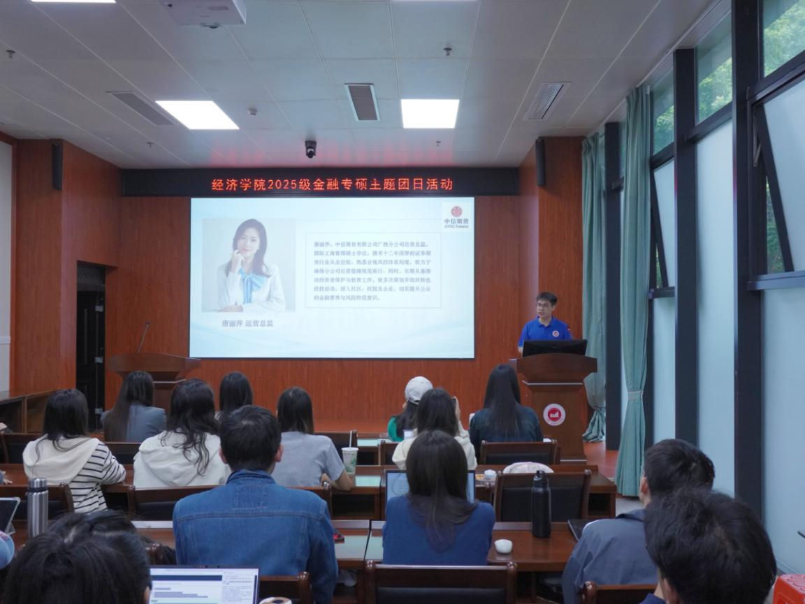 2025级金融专硕新生迎来了一堂特殊的"必修课"——中信期货广西分公司运营总监唐丽萍受邀讲授"金融反诈",将风险防范的战线前置到了职业生涯的起点。