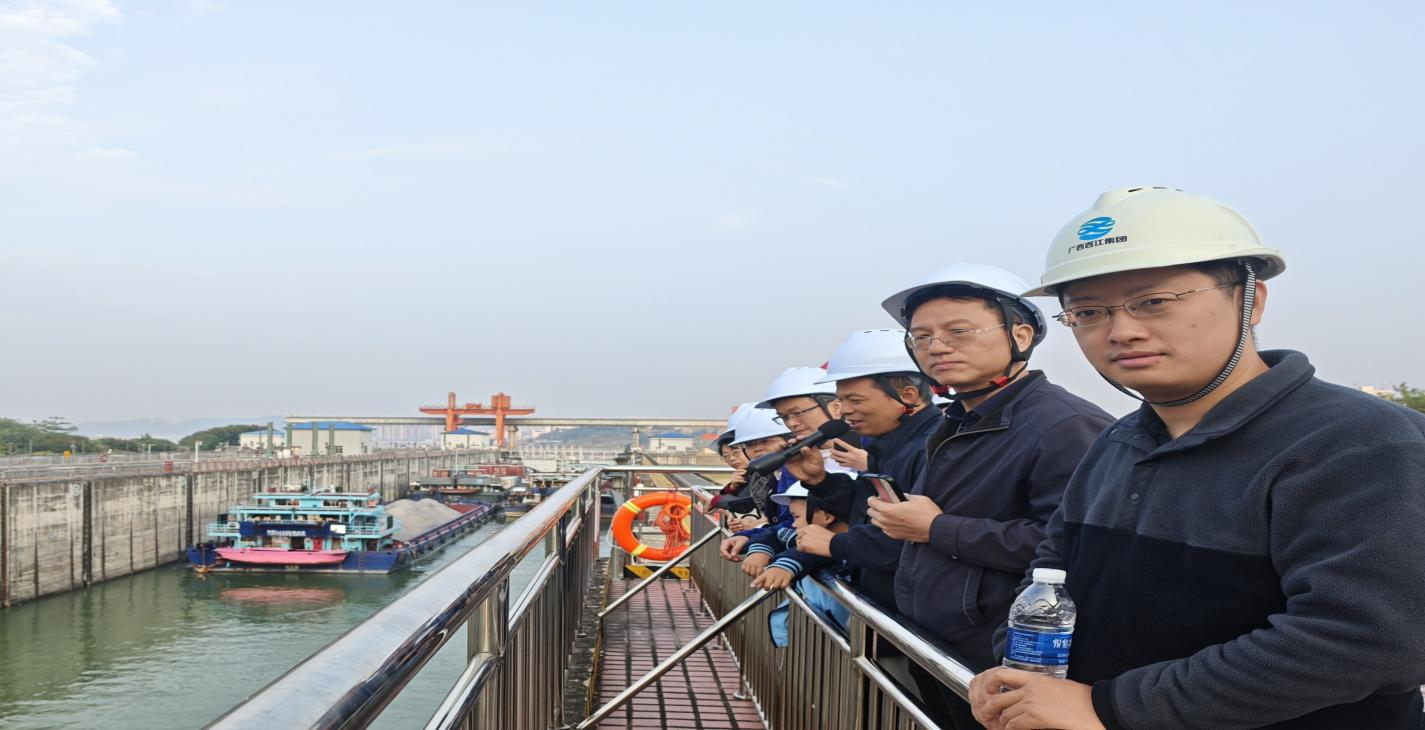 随后,大家走进西江集团梧州长洲船闸调度现场,现场考察了船闸的数字运营过程。船舶位置、闸门开关、水位变化、调度过程等场景一目了然;通过先进的智能调度系统,千里西江航道井然有序,通航效率大幅提升。党员教师们深刻感受到,现代信息技术与传统航运的深度融合,正强力驱动着这条连接粤港澳、辐射大西南、面向东盟的“水上高速公路”提质增效,是现代化基础设施体系建设的生动缩影,也为构建高效顺畅的流通体系、服务国内国际双循环提供了坚实支撑。