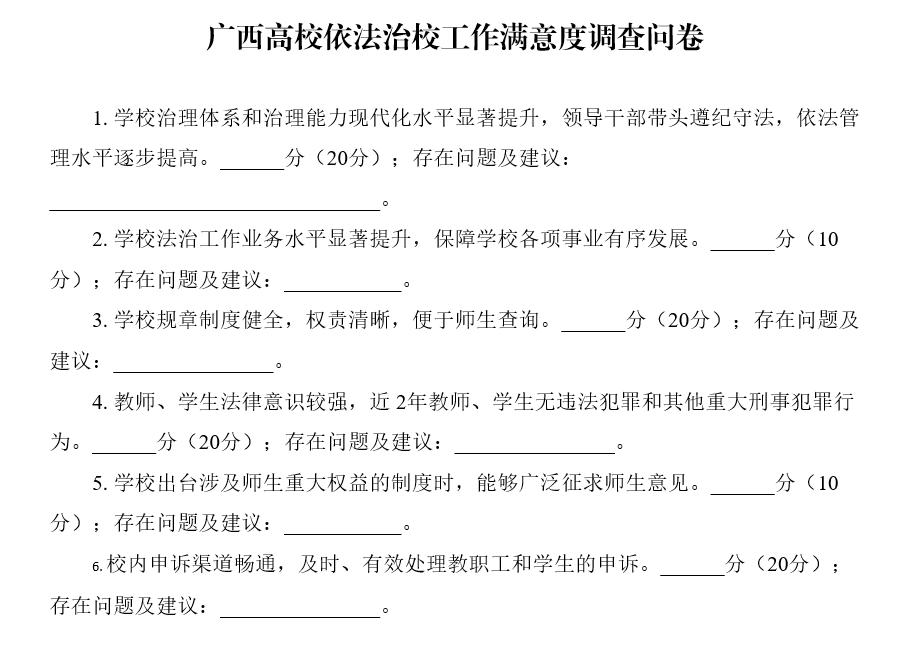 依法治校达标建设和示范校创建评估工作的通知》 (桂教政法(2023)4号) 的部署和要求,需以网络问卷的形式开展依法治校工作满意度调查。