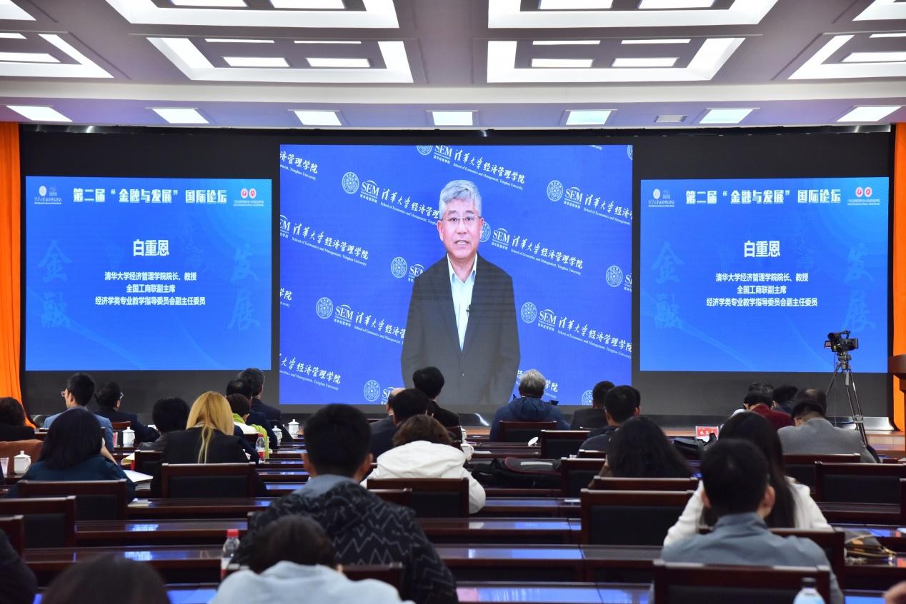 院长白重恩(线上参会)分别在开幕式上致辞。中国人民大学原副校长、中国资本市场研究院院长吴晓求发表了题为《尊重人类文明优秀成果是知识创新的起点》的主题演讲,认为在构建中国自主经济学和金融学的知识体系的时候需要高度关注以下三点:一是要对学科有敬畏之心;二是要注意对常识的尊重;三是对趋势的顺应。