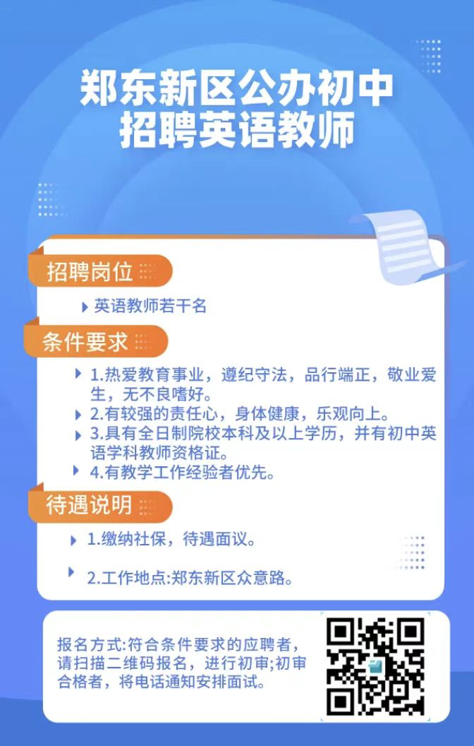 拟招聘临聘教师,岗位如下:初中英语教师若干。