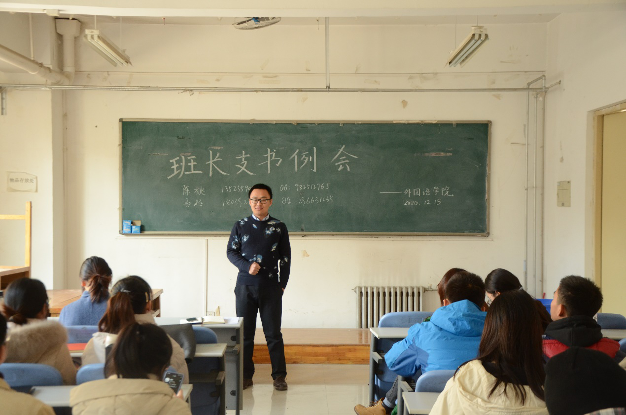 于龙子湖校区海棠园202自习室召开了本学期第十二次班长支书例会。团委副书记陈桃、冯超、辅导员牛烁携主要学生干部及各班班长支书参加此次例会。