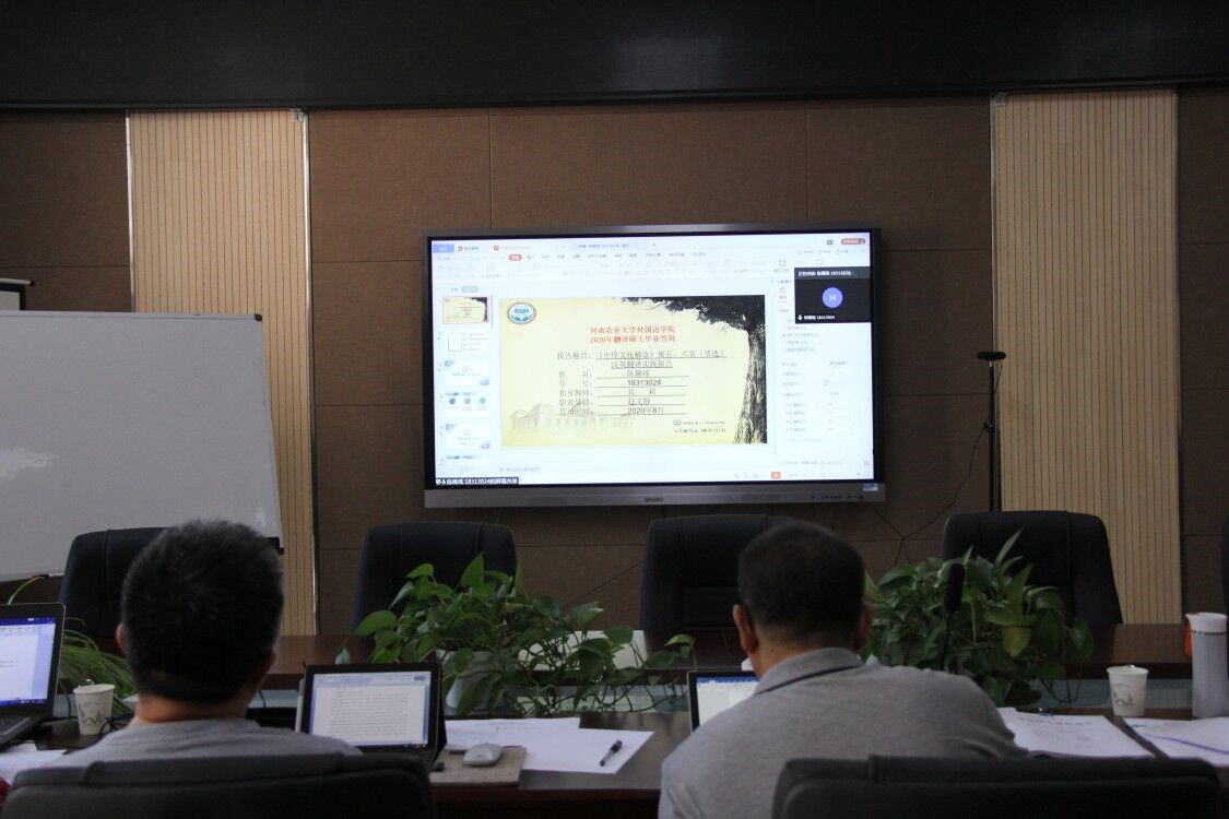 答辩会中,各个研究生通过网络会议的方式,从选题背景意义、译前准备、理论依据、翻译过程、未来研究方向等方面进行了简要陈述,然后由答辩委员会专家针对研究生所讲述的内容逐个进行点评和提问,并就每位研究生的毕业论文逐个提出针对性建议。接下来,研究生们对专家所提出的问题作出认真回答,并仔细记录专家的意见、对专家们的建议进行理解和吸收。答辩环节结束后,答辩委员会根据论文质量和答辩情况进行商议,最后通过无记名投票的方式表决论文答辩是否通过。