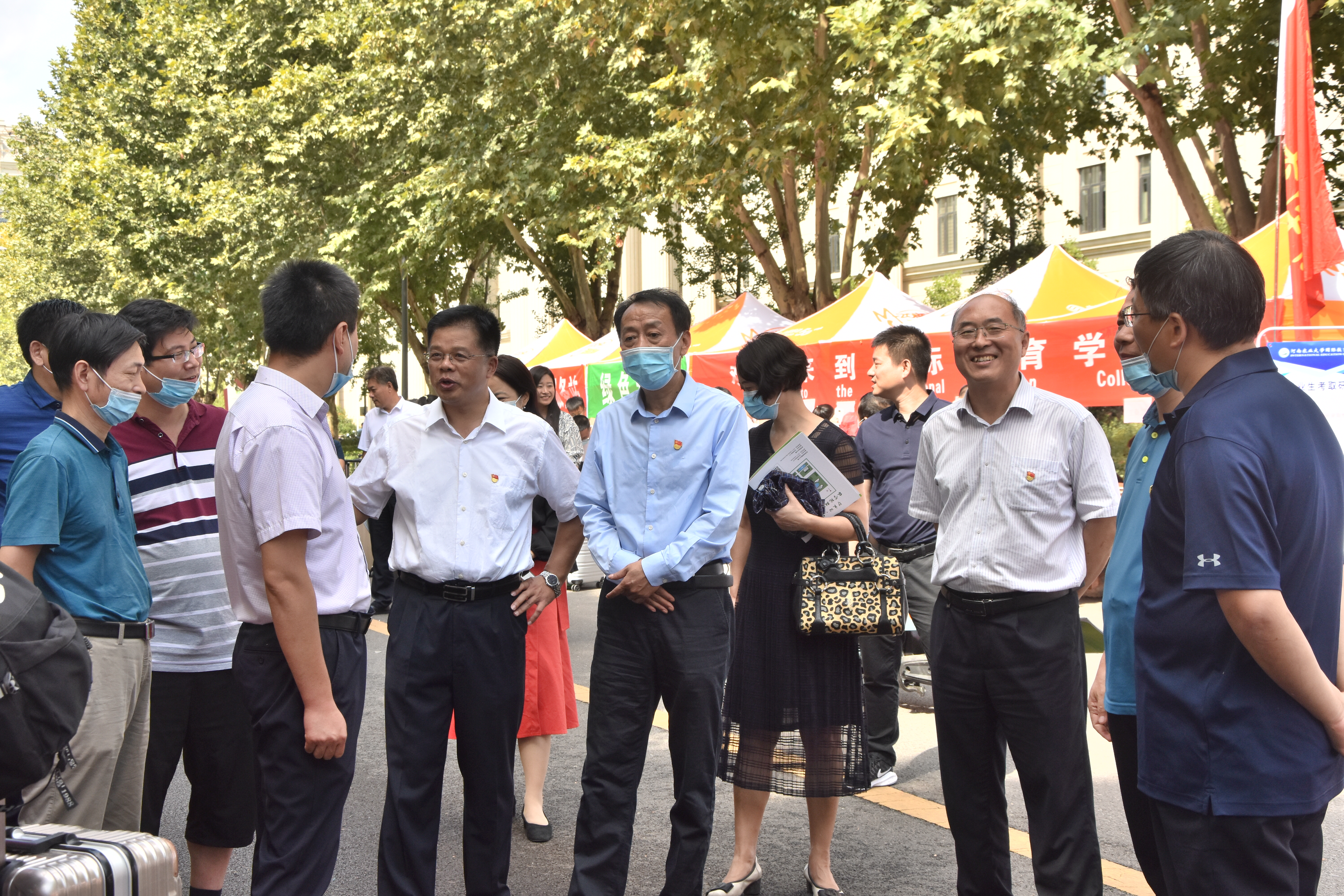 领导班子成员亲临现场迎接新生入校。他们在现场或亲自参与新生学籍审核、扫描报到,或新生现场交流、询问入学感受,或慰问现场迎新工作人员和迎新志愿者。迎新期间,校党委书记魏蒙关一行来到太阳城App