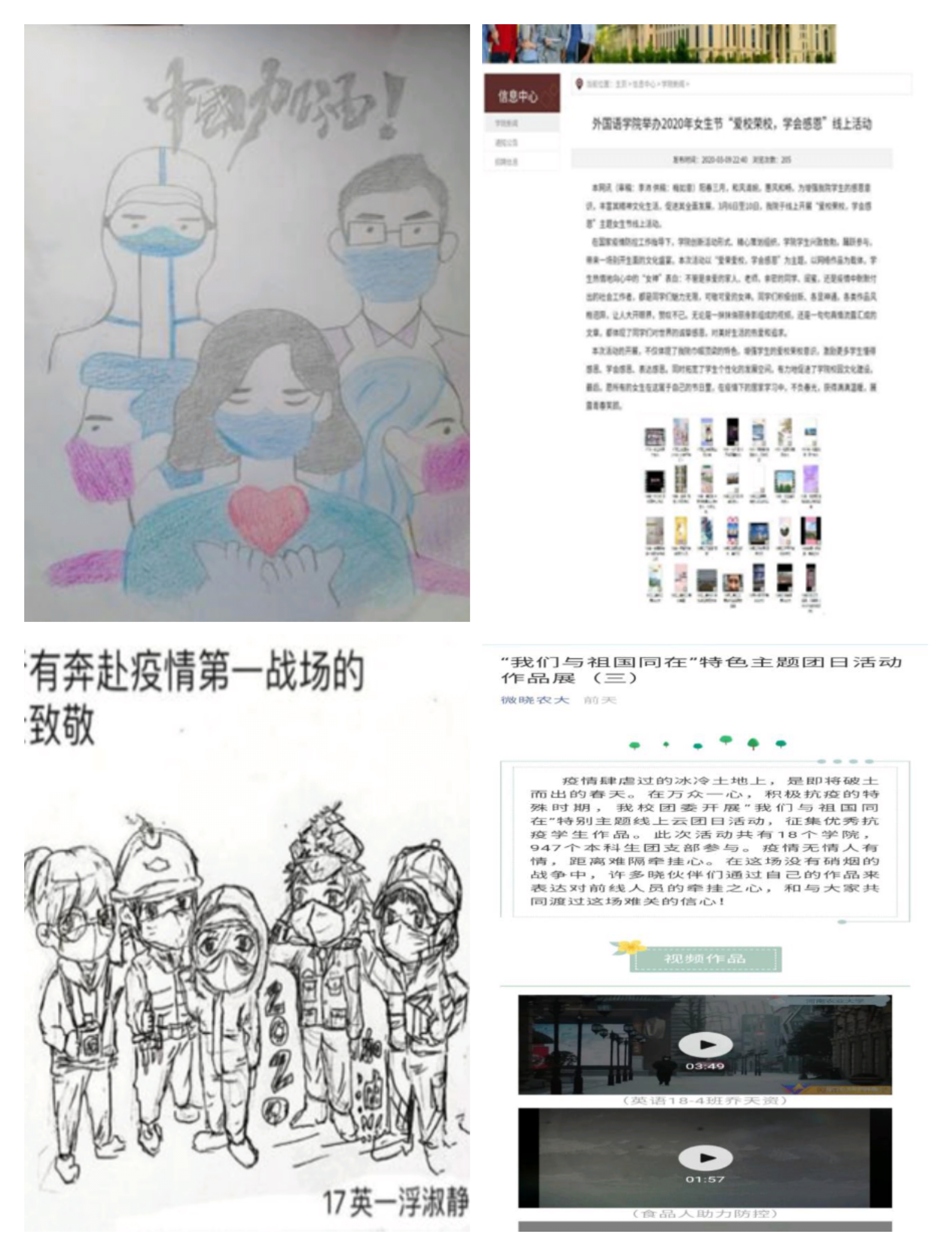发展的蓬勃力量;更有以“我们与祖国同在”为主题的作品征集活动,同学们通过书写文章、画手抄报、录制小视频等多个形式表达了要与祖国共进退、与全国人民一条心,共克时艰、战胜“疫情”的信念与决心。其中,同学们的优秀作品更是获得校、院新媒体平台推广宣传,取得良好宣传教育效果。