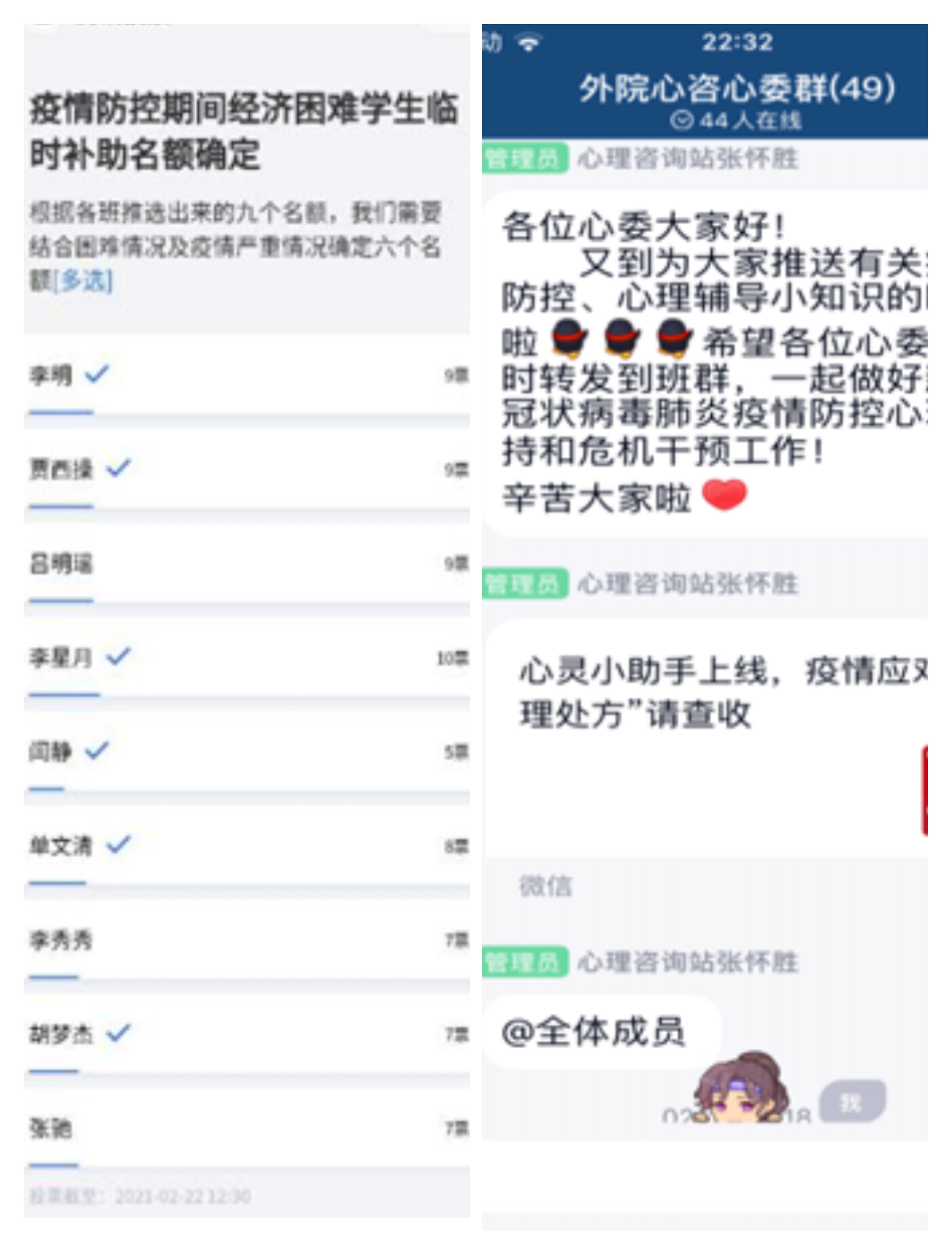 学生工作领导小组讨论研究,不仅为家庭经济困难和受疫情影响的学生给予临时性补助,而且还制定了针对特殊学生,年级辅导员一对一进行心理疏导和学业指导;给困难学生免费送流量,助力“停课不停学”;开学后太阳城App