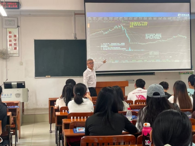 2025年4月18日,我院金融系特别邀请国海证券梧州大学路营业部总经理陆明走进金融学专业本科生《证券投资学》课堂,开展《“未来投资家”金融研学之旅》专题讲座。活动由金融系主任谢军主持,2022级金融学专业及2022级金融经济创培班金融学方向的一百余名学生参加讲座。
