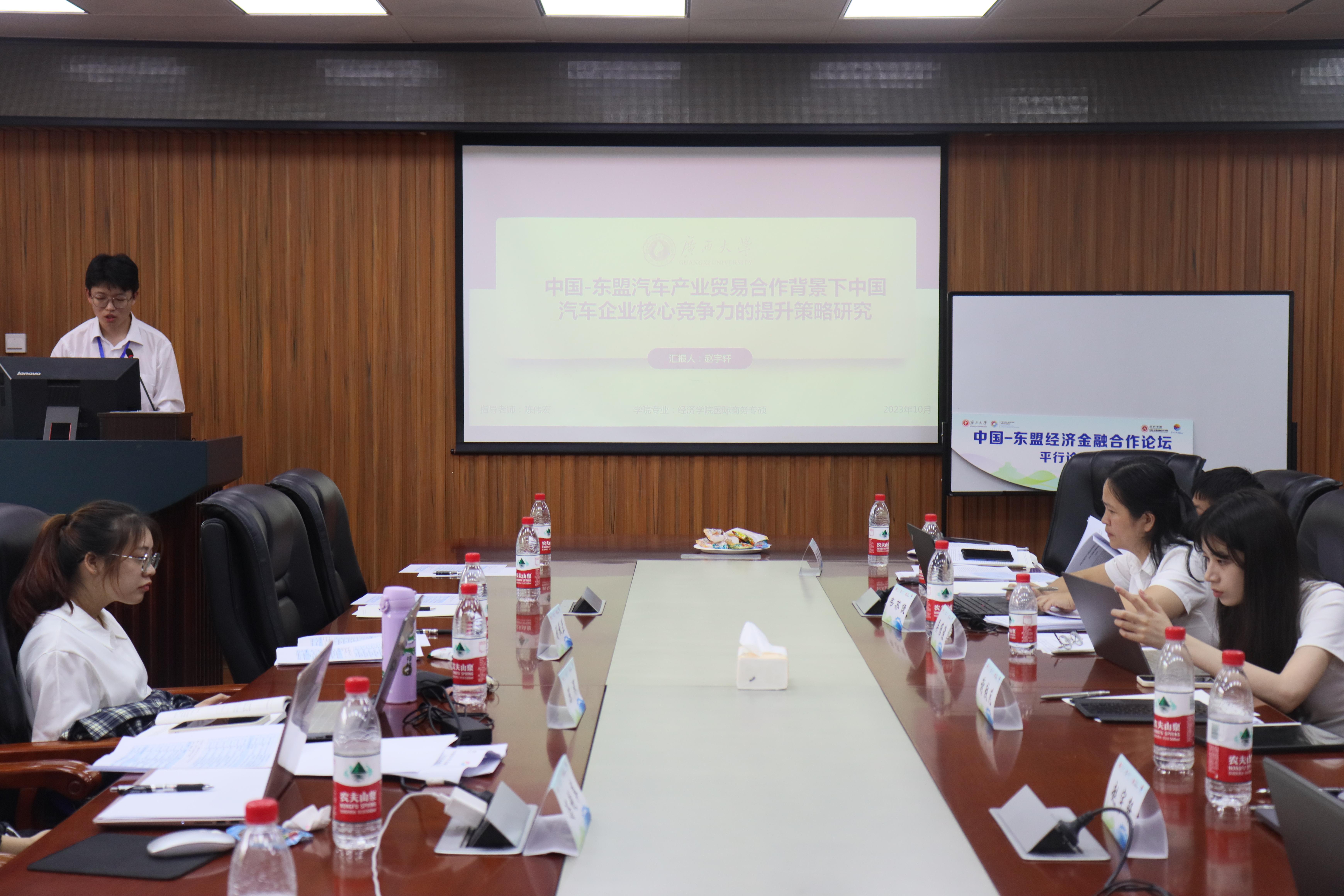 第一届中国—东盟区域合作发展论坛的分论坛之一。来自越南、泰国、马来西亚和国内复旦大学、北京航空航天大学、中国银行研究院、中国现代国际关系研究院、广东外语外贸大学、云南财经大学等高校及研究机构的专家学者欢聚一堂,探讨中国—东盟经济金融高质量发展的新模式、新路径,共议构建更为紧密的中国—东盟命运共同体,以高水平对外开放促进广西高质量发展。